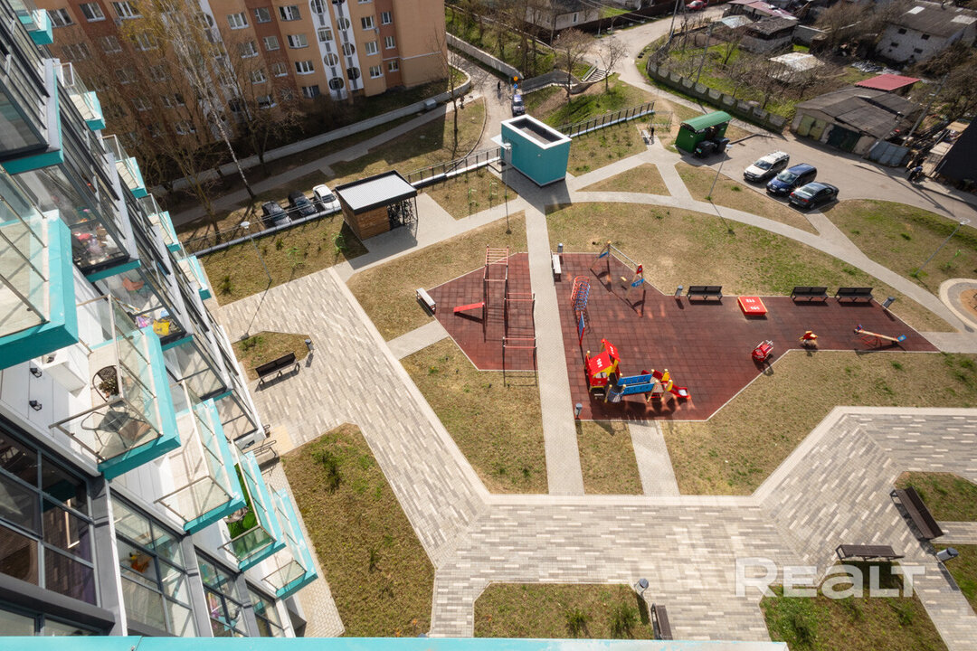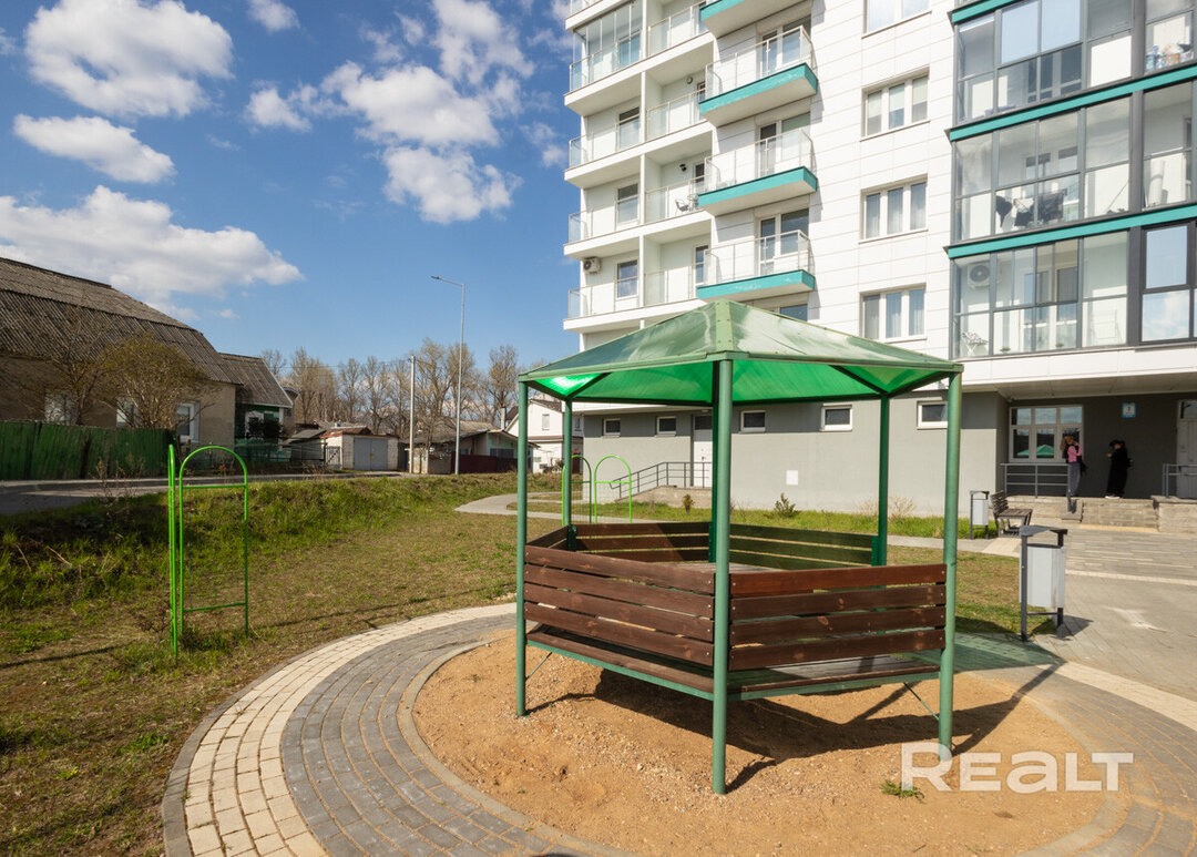 Рядом с домом можно найти детские сады, гимназии и школы, остановки общественного транспорта, объекты сервисного обслуживания и досуга. Прямо напротив многоэтажки расположен парк Дружбы Народов, в пешей доступности — Киевский сквер, парк Победы, Цнянское водохранилище. От улицы Карастояновой легко добраться в любой район Минска, а через несколько лет на площади Бангалор появится станция метро.