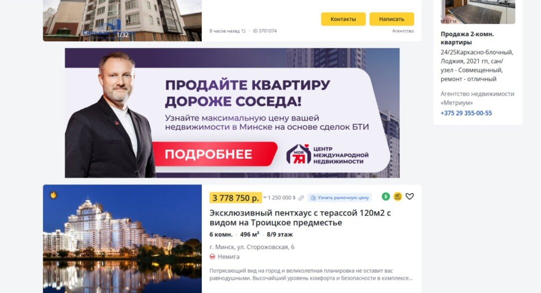 - выбирайте пакет «Успешная продажа + имидж», в рамках которого мы превратим ваш объект в информационный повод, направим к нему максимум внимания и увеличим просмотры объявления в 8−10 раз, а также дадим вам возможность показать себя и свое агентство через экспертные комментарии — от 10 000 просмотров, стоимость с уже включенной 50%-й скидкой 2 100 BYN (+300 BYN за фото).