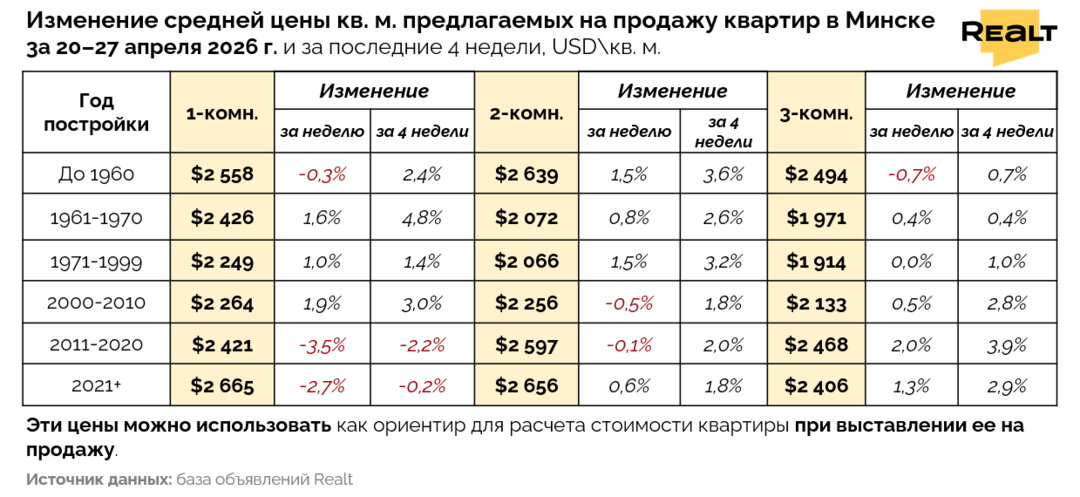 Апрель провалился: сделок меньше, однушки начали дешеветь. Обзор ситуации на вторичке Минска за 20−27 апреля