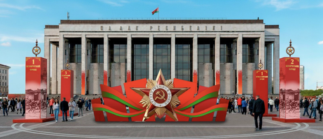 К 9 Мая праздничные инсталляции появятся как на главных локациях города, так и на районных площадках. На Октябрьской площади, к примеру, установят композицию из шестиметровых колонн, которые сформируют символическую Аллею памяти. На каждой колонне будет информационный блок о победном продвижении 1-го, 2-го и 3-го Белорусских и 1-го Прибалтийского фронтов. Планируется, что это превратит площадь в музей под открытым небом.