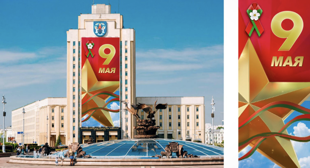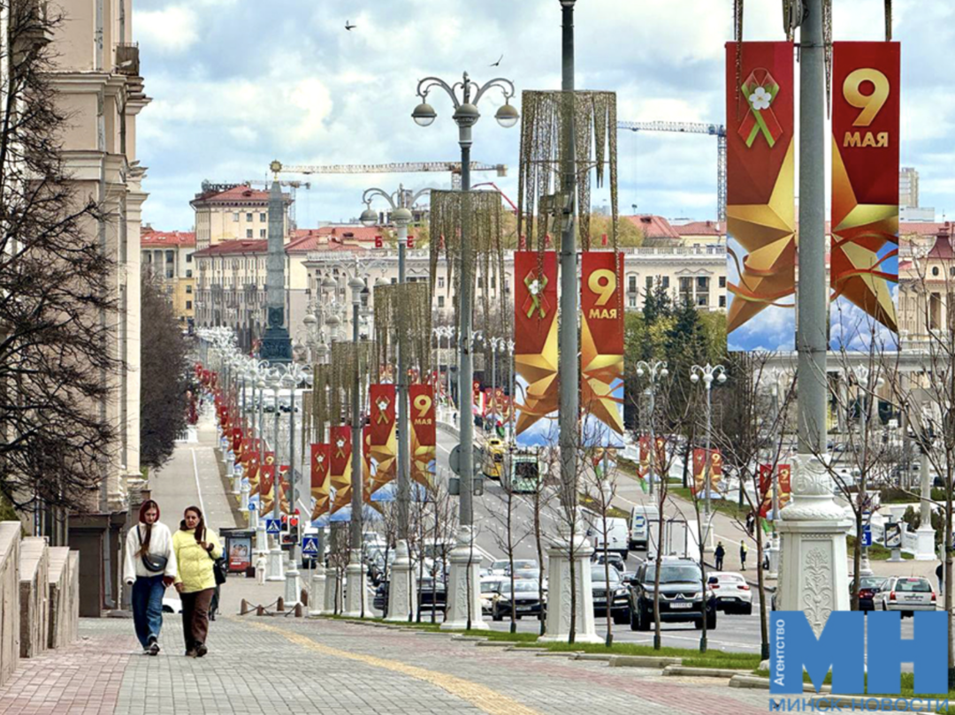 Площадь Независимости украсит масштабная композиция «С Днем Победы». А на фасаде Белорусского государственного педагогического университета имени Максима Танка традиционно разместят 40-метровое тканевое панно с праздничным изображением, состоящее из 8 тысяч флажков.