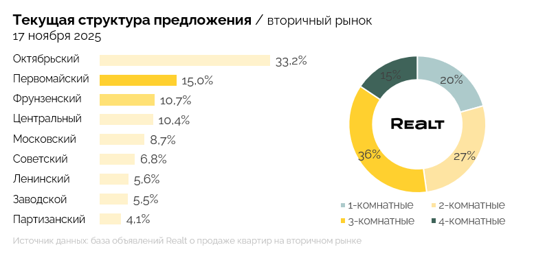 Динамика предложения по всем районам показала разнонаправленные изменения. Существеннее всего это коснулось Партизанского района — плюс 8.9%, а также Московского района — плюс 6%.
