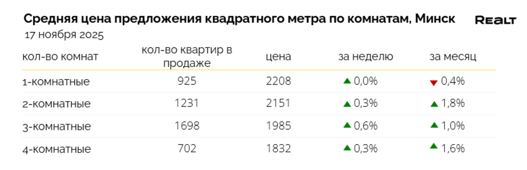 Оперативные данные по сделкам в Минске