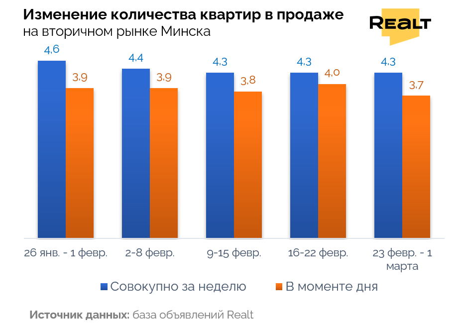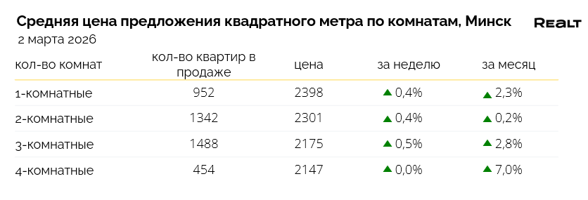 795Рынок вторичного жилья в Минске вошел в начало марта в состоянии тихой, но ощутимой активности. Общее количество квартир в продаже формально почти не изменилось, однако выбор в моменте заметно сократился — признак того, что сделки идут быстрее, чем предложение успевает обновляться. На фоне такой динамики цены в объявлениях продолжают ползти вверх, несмотря на преобладание случаев снижения стоимости. Подробности — в еженедельном обзоре Realt.