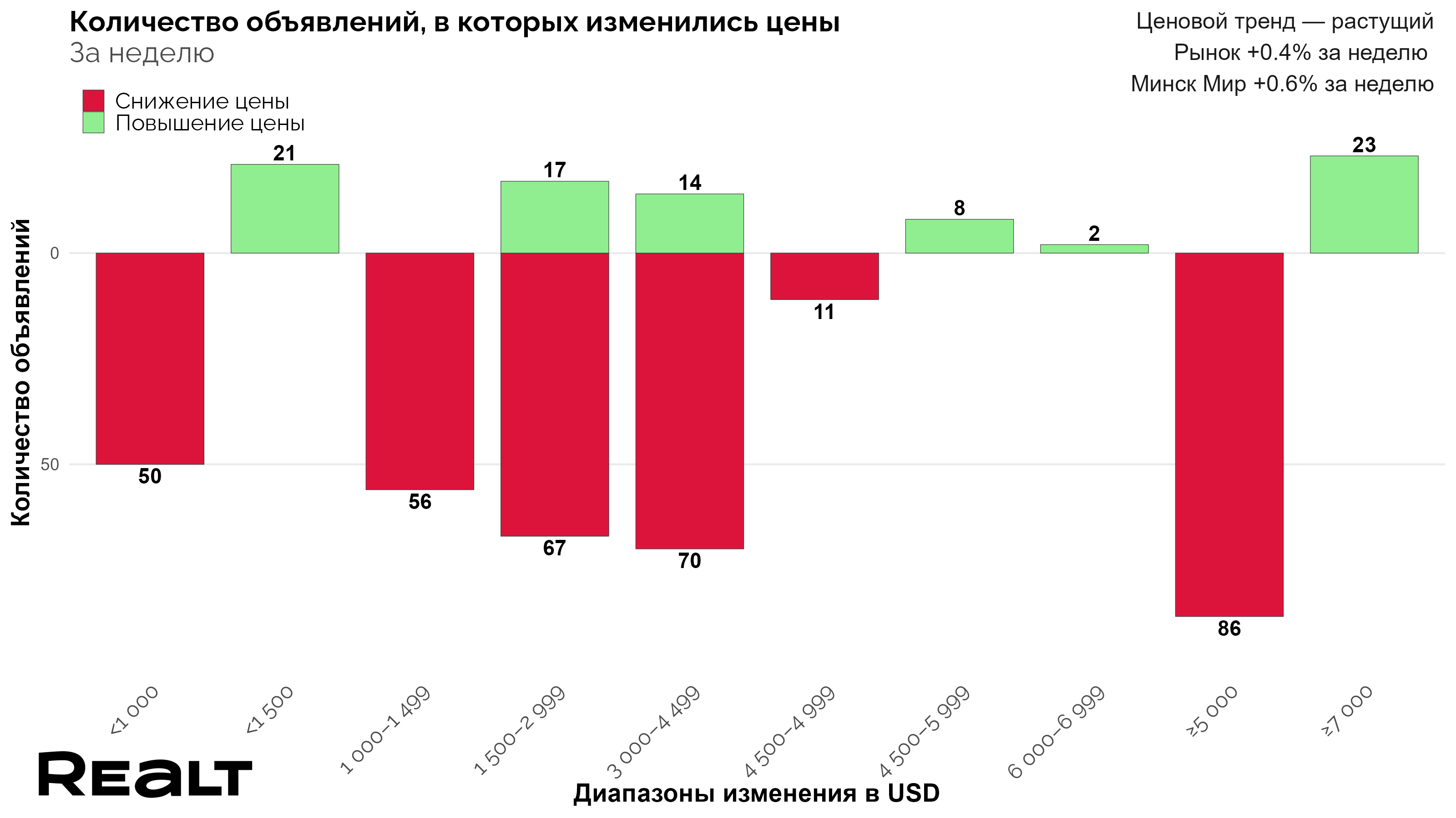 продолжают расти, несмотря на то, что из числа размещенных объявлений случаев снижения цены больше, чем ее увеличения. Только увеличивают цену на большую сумму, чем снижают.