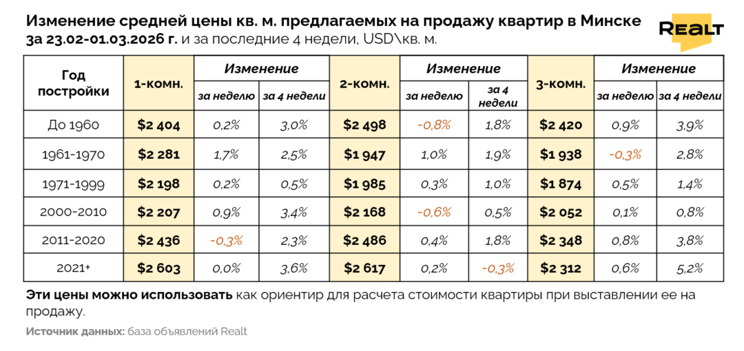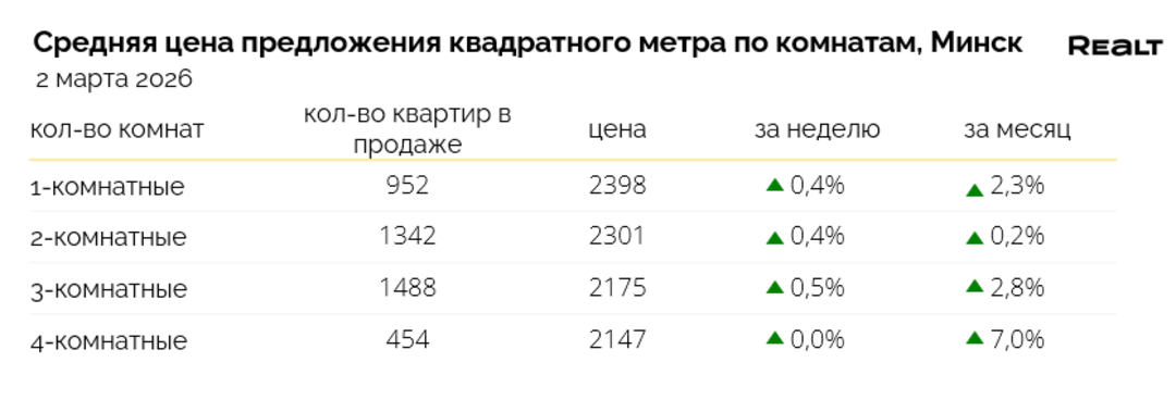 795Рынок вторичного жилья в Минске вошел в начало марта в состоянии тихой, но ощутимой активности. Общее количество квартир в продаже формально почти не изменилось, однако выбор в моменте заметно сократился — признак того, что сделки идут быстрее, чем предложение успевает обновляться. На фоне такой динамики цены в объявлениях продолжают ползти вверх, несмотря на преобладание случаев снижения стоимости. Подробности — в еженедельном обзоре Realt.