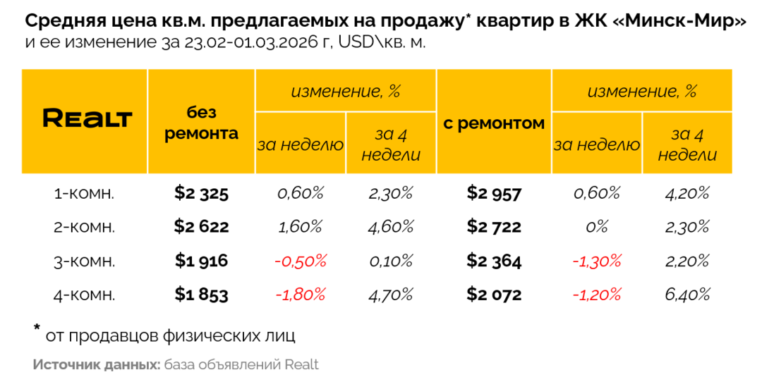 Понимая ваш интерес к квартирам в ЖК «Минск-Мир», теперь мы будем отслеживать динамику цен конкретно по этому комплексу.