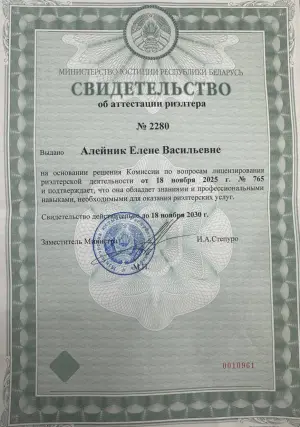 Хочу выразить огромную благодарность Алейник Елене Васильевне! Абсолютно полное сопровождение и консультация на всех этапах. Очень довольны её работой , спасибо ей огромное, она высоко квалифицированный специалист и настоящий профессионал своего дела. Желаем ей побольше клиентов, хороших больших сделок и удачи в её работе. Смело могу рекомендовать такого светлого человека всем, кому понадобится решить вопрос продажи или покупки недвижимости.