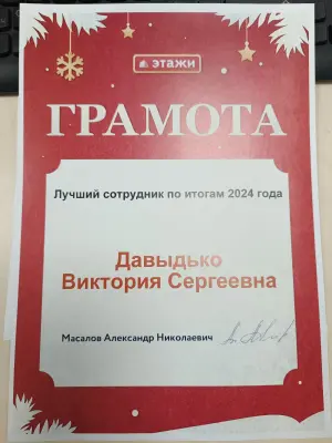 Хочу поблагодарить за профессионализм и оперативность агента Давыдько Викторию! У нас была необходимость продать квартиру квартиру быстро и не потерять в стоимости. Виктория честно объяснила нам наши возможности, грамотно составила объявление, сделала качественные фото, активно проводила показы покупателям. В результате меньше чем за месяц мы продали квартиру! Спасибо за хороший результат!