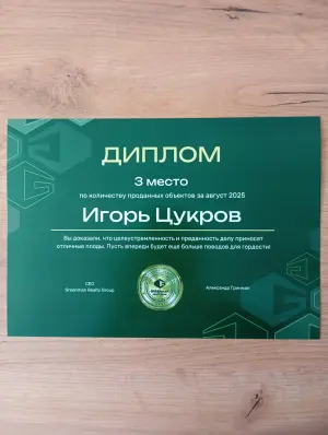 Меня зовут Игорь, я риэлтер компании Фаттория + , которая является победителем Международной бизнес-премии «Номер Один» 2025 в номинации «Агентство недвижимости №1.