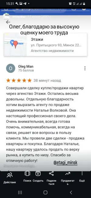 Хотим выразить огромную благодарность Наталье за помощь с покупкой квартиры! Мы пришли с кучей пожеланий и почти опущенными руками, а ушли с идеальной квартирой, от которой в полном восторге. 🔥 Наталья профессионал своего дела, она помогала нам на всех этапах от подбора до сделки, всегда была на связи, находила удобные для нас условия, в том числе по мелочам, о которых мы сами бы даже не подумали. Решала возникающие вопросы с документами и общением с продавцом. Благодаря её настойчивости и опыту всё прошло быстро, гладко и в наших интересах. Мы искренне благодарны Наталье за её вовлечённость и человеческий подход и желаем дальнейших успехов. С уверенностью можем рекомендовать агентство недвижимости Клевер и Наталью Волкову всем, кто ищет надежного специалиста по недвижимости!