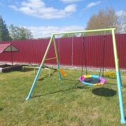 Усадьба расположен в 120 км от Минска. Находится между двумя озерами: Нарочь и Мястро. Неподалеку находится лиственный лес. Коттедж оборудован водоснабжением, санузел в доме, холодильник, микроволновка, газовая плита,телевизор. Так же имеется баня. На просторном участке находится беседка на 15 человек, качели, песочница для детей, гамак, место для приготовления ухи, мангал, застекленное барбекю, парковки. Дополнительная плата: Тачка садовая дров 40р Баня 80