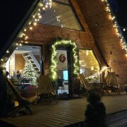 Предлагаем отдохнуть в нашем новом, современном доме-шалаше, с деревянной террасой, рассчитанный на 6 человек. На территории у нас есть: баня с понорамными окнами, горячая купель, беседка с мангальной зоной. В доме есть все необходимое для комфортного отдыха: гостиная со вторым светом, дровяной камин, две комнаты с кроватями, диван, средства личной гигиены, фен, комплект полотенец, посуда для сервировки, чайник, микроволновая печь, чай, кофе, соль, сахар. Заселение: заезд 15:00, выезд 12:00.