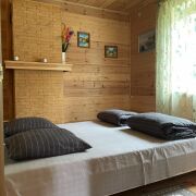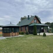 усадьба в окружении соснового леса на берегу реки Вилия для спокойного отдыха(это важно).До 6 человек.Баня,крытый бассейн летний, беседка с мангалом, детская площадка, гамаки.В доме все удобства, камин, Бесплатный Wifi., Стоянка а/м.