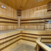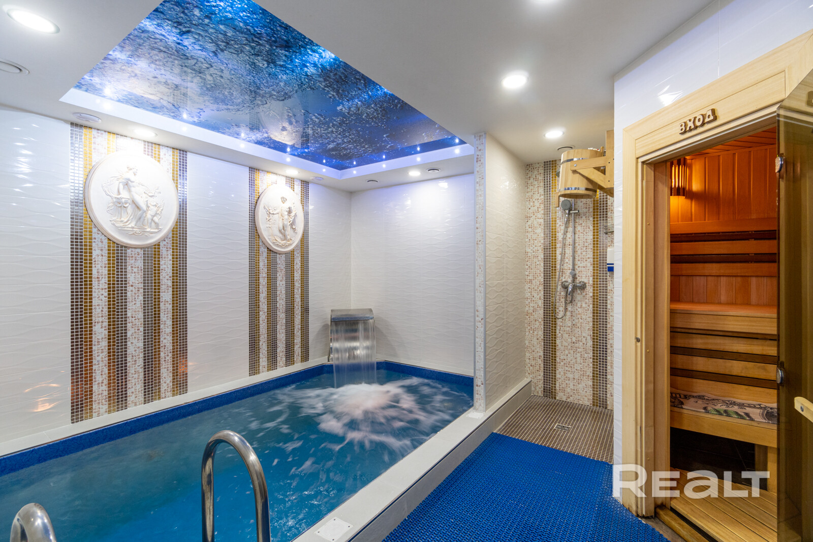 Небольшим компаниям до 5 человек предлагается отдых в Малом доме. Помимо спален здесь есть финская сауна, бассейн, просторная гостиная, где можно провести время за беседой, накрыть стол.