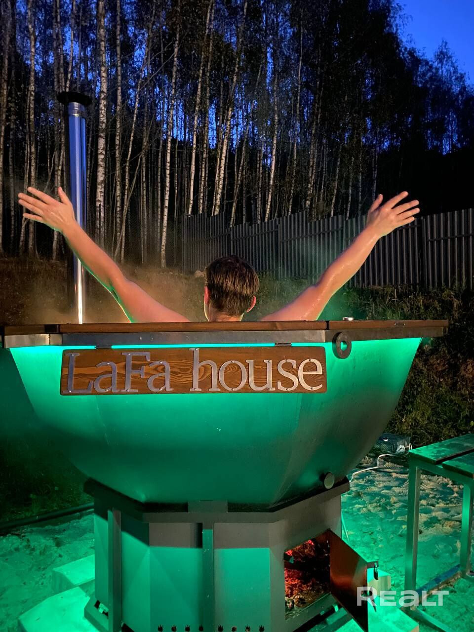 23 км от МКАД. для двоих в будние дни 250б. р. Стоимость на компанию до 4 человек в будний день 450 б. р., далее +50р.за человека. Выходные 600 б. р. до 4 человек, за каждого следующего гостя доплата 50р. Баня оплачивается отдельно -3 часа 200р, банный чан-200 рублей безлимит.