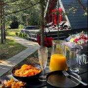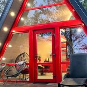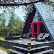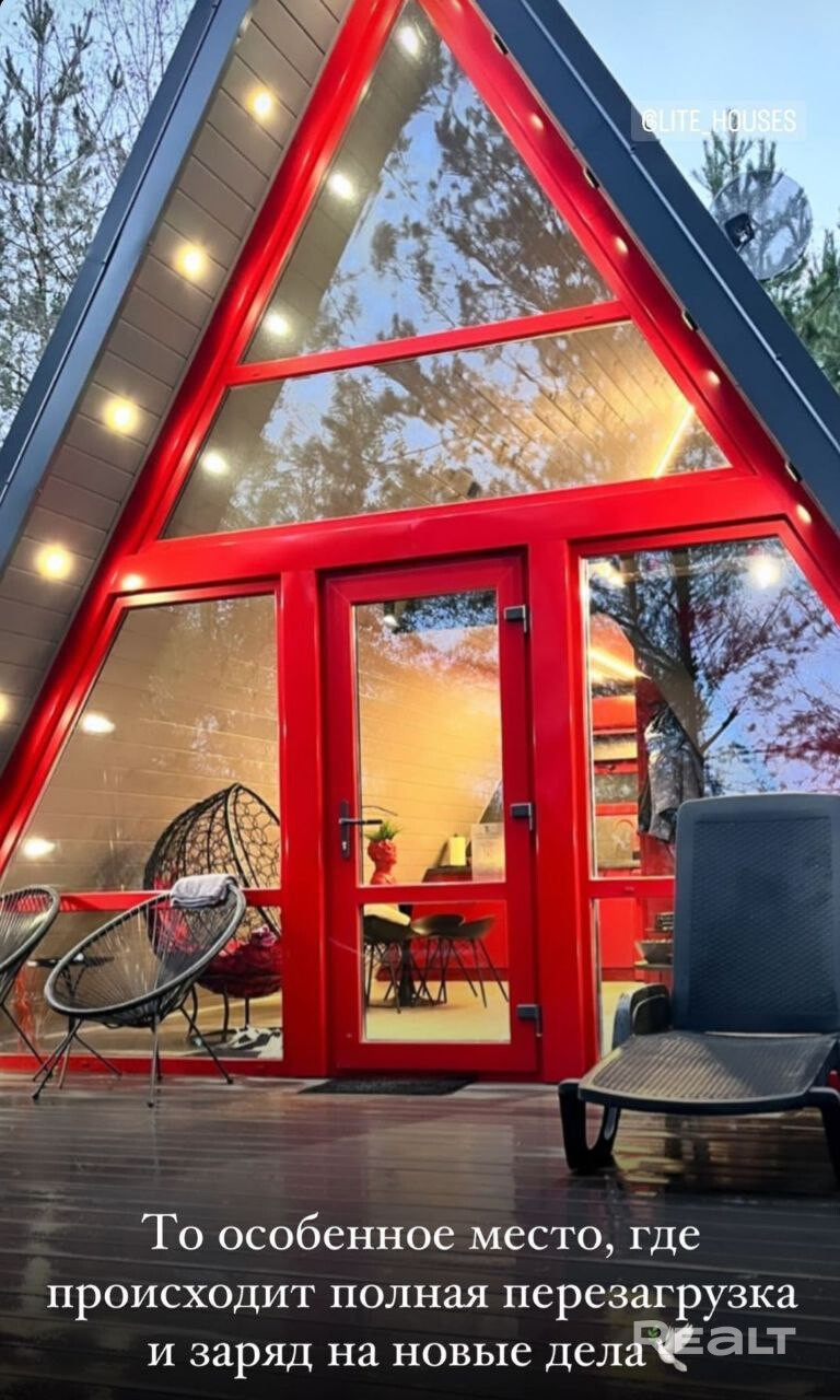 Домик Red -один из стильных треугольных домиков с ламповой атмосферой и горячей (холодной) купелью, расположенный в эко-комплексе LITE_HOUSES среди лесного массива. Его яркий вид, качественное наполнение, атмосферность сделали его самыми популярным на страницах инстаграм у многих гостей и блогеров. В этом домике больше, чем в остальных заказывают услугу Романтик для своей половинки, услугу День рождение и девишник и мальчишник.