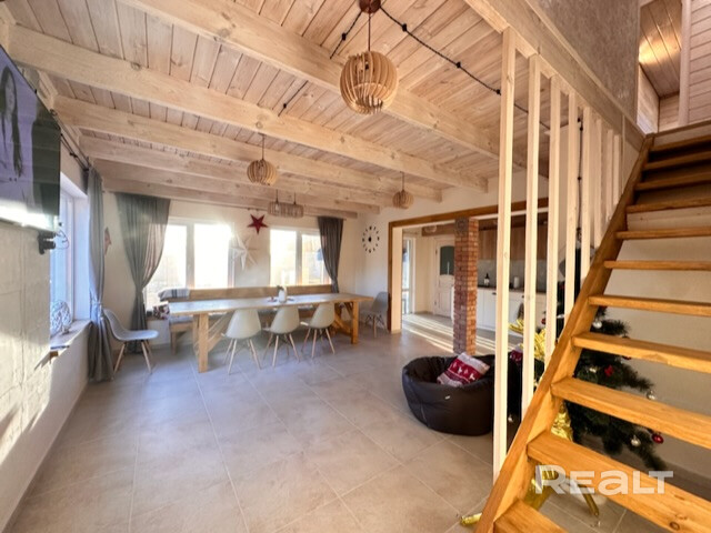 Пн-чт:550р, пт:650р, сб: 900р. вс: 600р. 9-10чел+100р; 11-12чел+200р. Наш дом в 10 мин от Минска! На 1 этаже комната отдыха, большой стол,караоке.Вся посуда и техника (кофемашина,микроволновка,мангал и др.). Тёплый бассейн,нырнув в который внутри дома, можно вынырнуть на улице! 2-й каркасный бассейн на улице,шезлонги. Бадминтон. Настольный теннис. 2-й этаж: 3 спальные комнаты. Баня оплачивается отдельно.