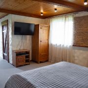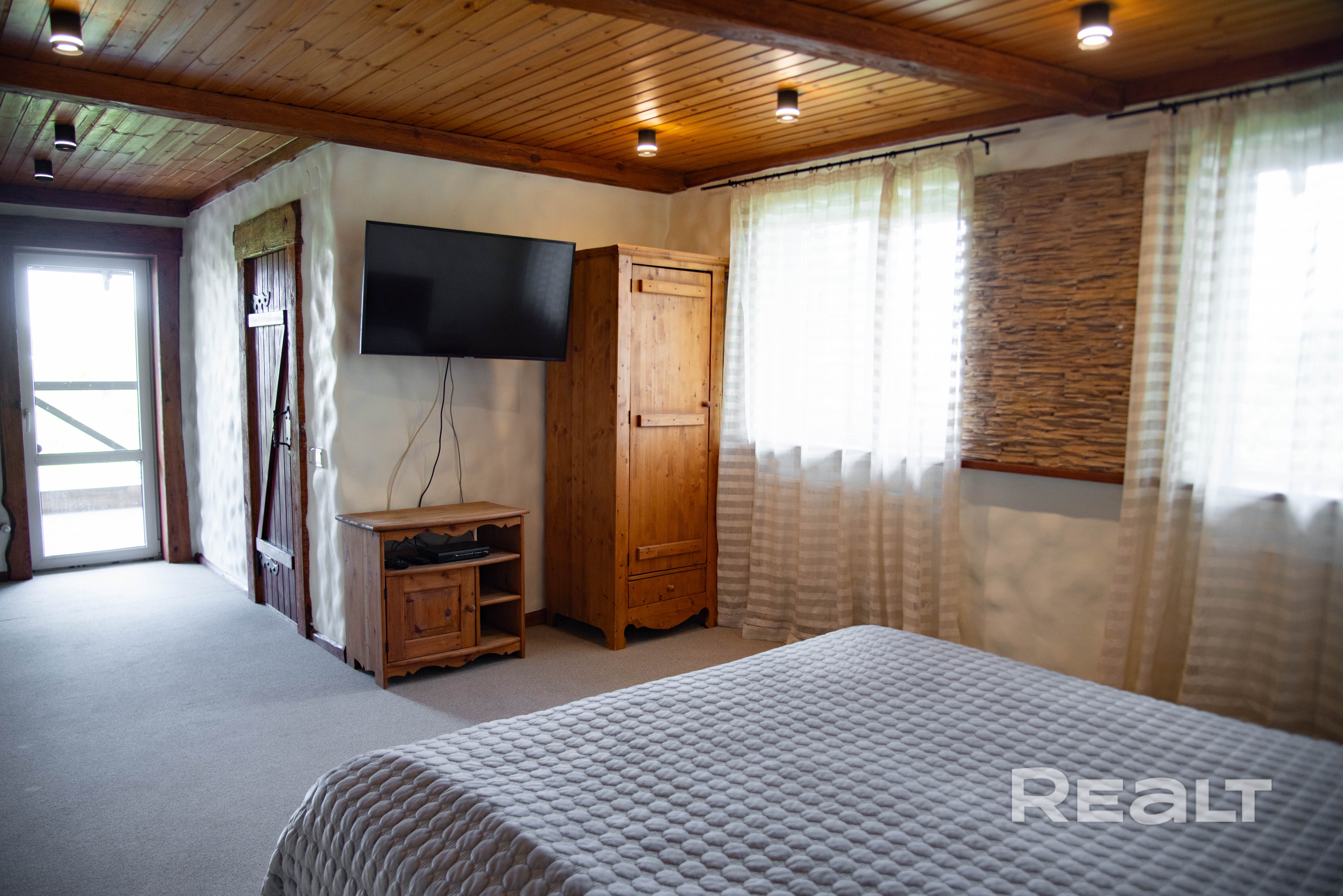 -Просторные спальни: В доме 4 уютные спальни с двуспальными кроватями. Три расположены на втором этаже, одна — на первом, что обеспечивает комфортное размещение.