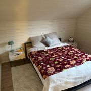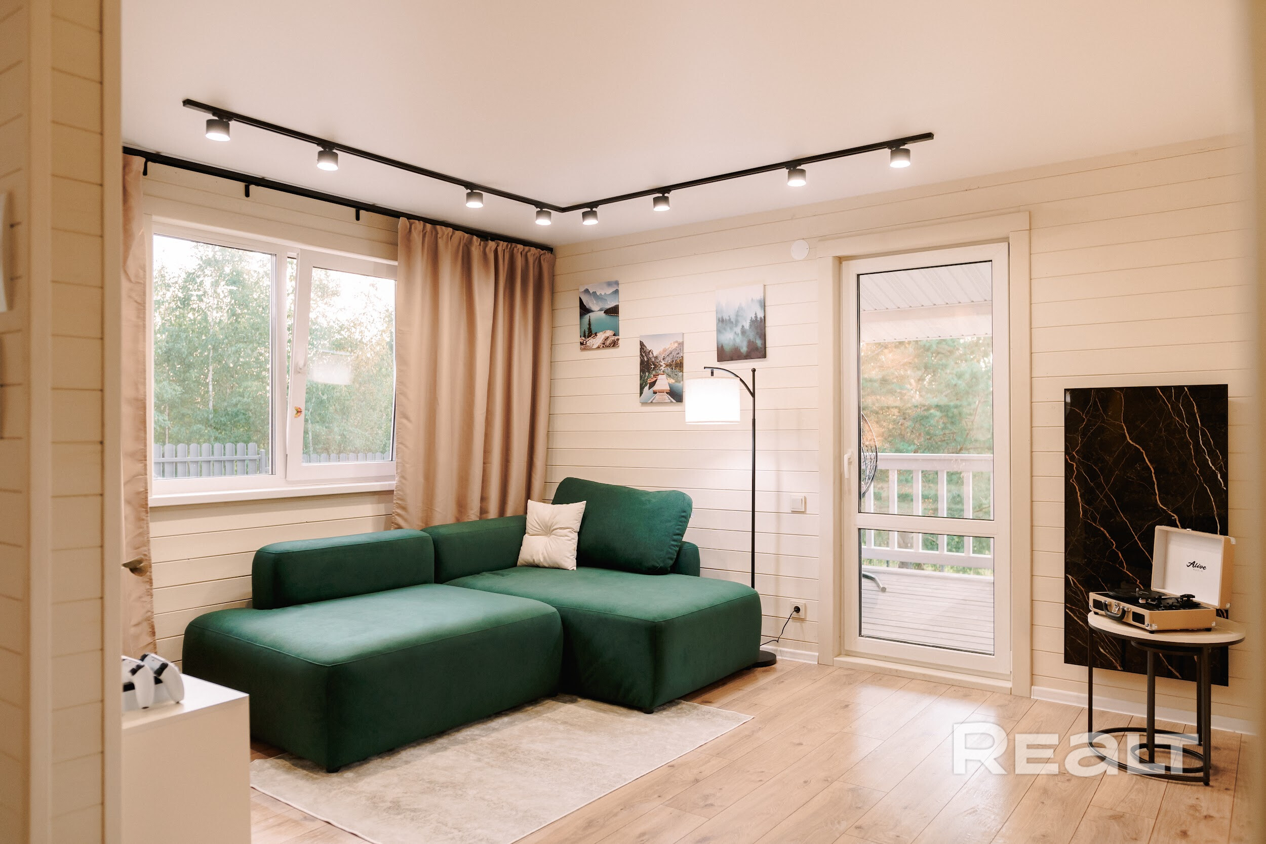 Внутри расположены 4 комнаты (одна из которых детская) + гостиная, там находятся 8 удобных спальных мест. Снаружи просторная веранда с мебелью для отдыха + качели-кокон, которые никого не оставят равнодушными) Кухня сделана в современном стиле и оборудована: индукционной плитой, микроволновой печью, вместительным холодильником и вытяжкой. На первом этаже — есть санузел и душ, а на втором — ванна.