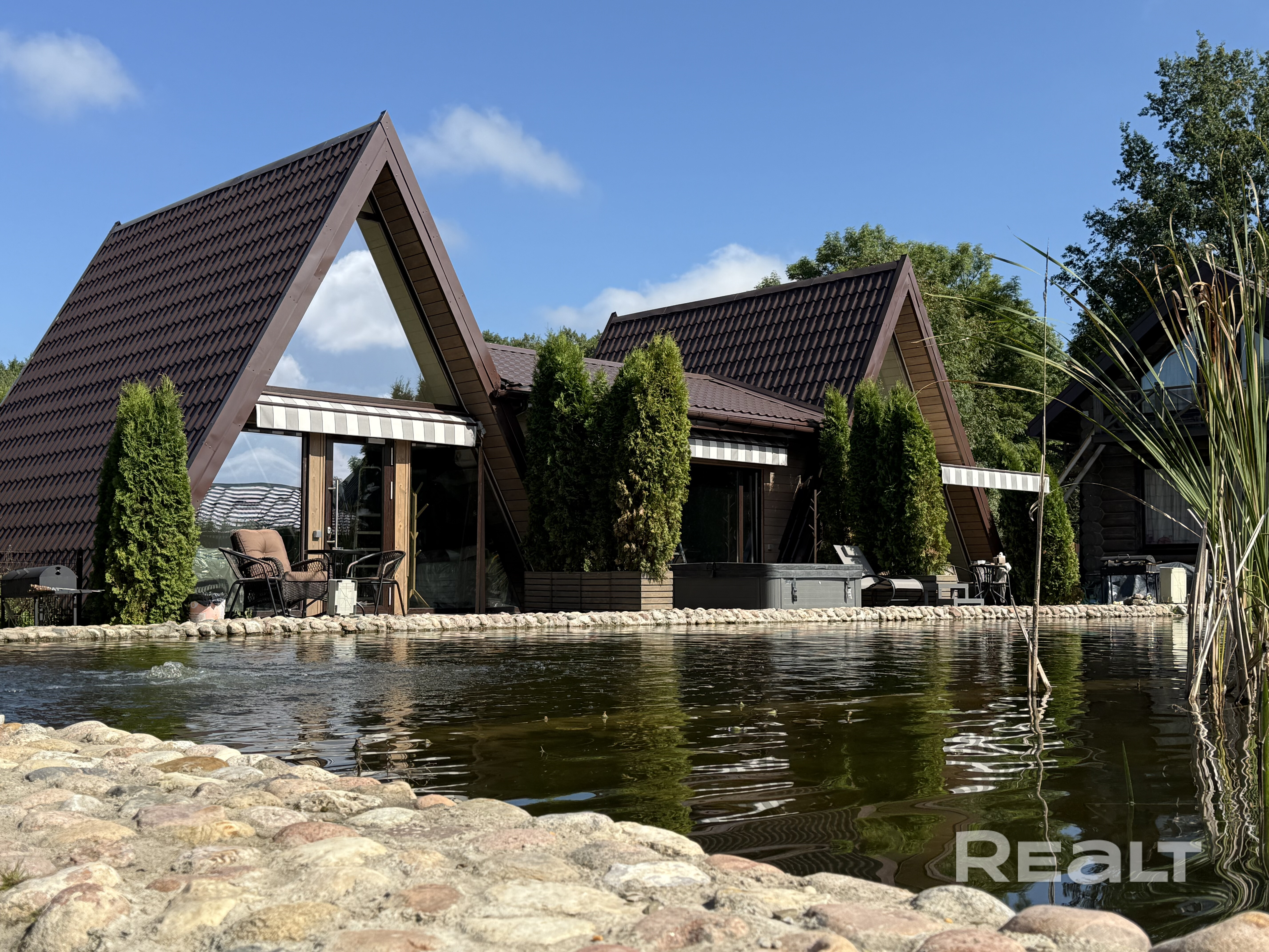 Усадьба расположена у лиственного леса и включает в себя хозяйский дом и два объекта для сдачи в аренду- ДОМ-БАНЯ для12-14 человек( 20-24 посадочных мест) и ШАЛАШИ с ДЖАКУЗИ и БАНКЕТНЫМ залом у пруда для от 2-х до 12-14 человек . Подробнее об объектах на https://realt.by/rent-cottage-for-day/object/3212647/