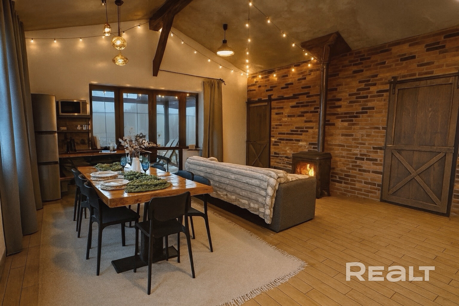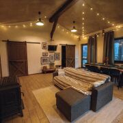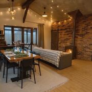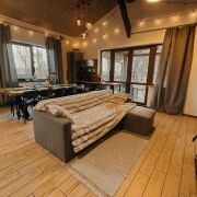 Откройте для себя атмосферный эколофт, расположенный всего в 23 км от Минска в невероятно живописном месте. Этот одноэтажный дом идеально подходит для групп до 12 человек. С 4 уютными спальнями, двумя санузлами и гостиной с камином, он обещает комфорт и уют. Летняя терраса с зоной барбекю и баня с открытым бассейном создают идеальные условия для отдыха. В шаговой доступности —самая атмосферная конная усадьба БУЦЕВИЧИ, где можно насладиться прогулками на лошадях. Доступен заказ домашнего питани