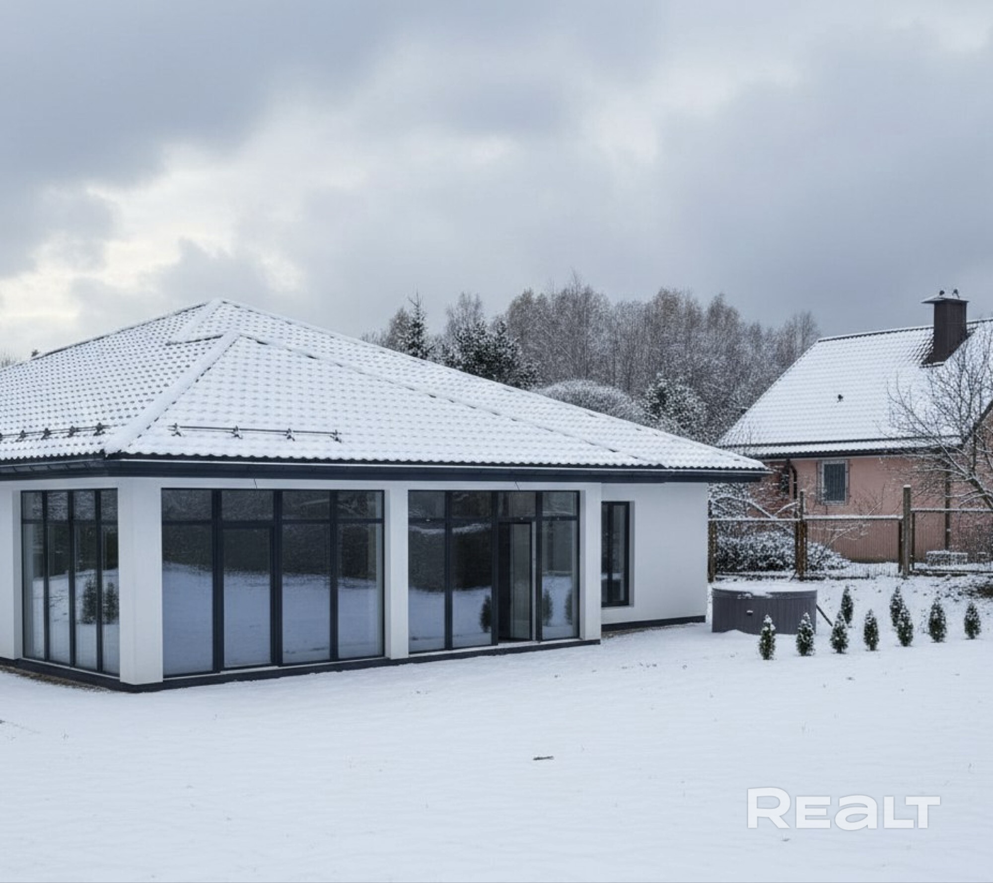 Новый дом 2025 года постройки. 15 спальных мест. Баня, хаммам, купель. Панорамные окна, красивый вид. 5 минут от Минска. Зарядка для электро автомобиля. Пол с подогревом. Современный интерьер.