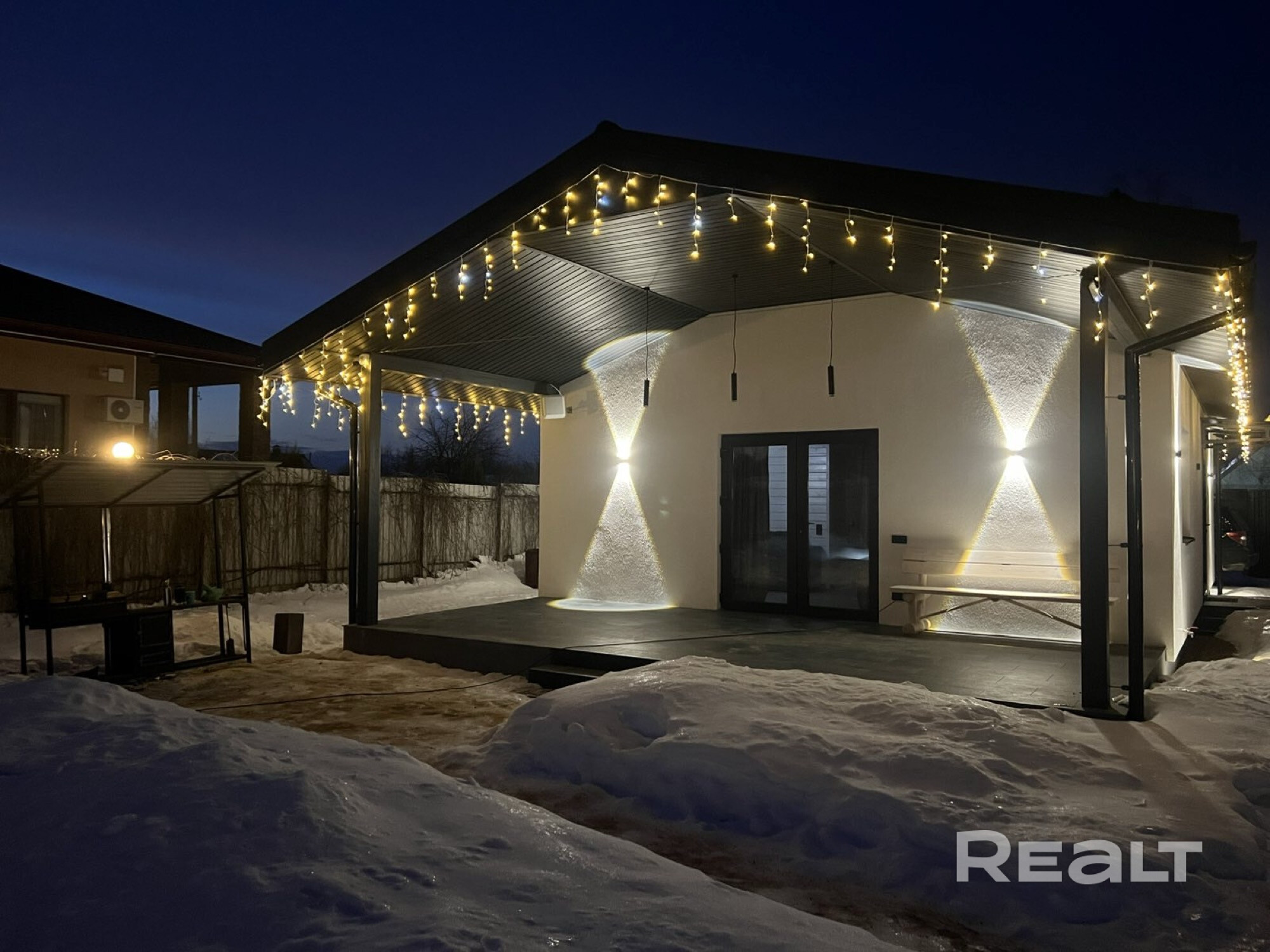 Аренда современного, уютного домика и бани на дровах вблизи леса и горнолыжных курортов Силичи | Логойск 5 км от Лoгойcка | 35 км от Минска ▫️ Большая придворовая тeppитoрия с парковочными местами ▫️ Мангальная зона ✨ Magic оформление гирляндой дома и бани ▫️ один пpоcтоpный дoм на территории на 6 спальных мест, баня на дровах с местом для ночлега на двоих человек (оплачивается отдельно) ✔️ Уютный просторный дом на 6 спальных мест с 2-мя спальнями, панорамным остеклением, гостиной ( комнатой отдыха с TV) ,санузлом оборудованным душем, укомплектованной кухней ( с варочной панелью) со всей необходимой техникой( электрочайник,микроволновая печь, холодильник )инвентарем и посудой, открытой террасой ,украшенной гирляндами с местом для отдыха, мангальной зоной/ зоной барбекю и казаном. ✔️ Уютная отдельно-стоящая баня на дровах с террасой , комнатой отдыха ,вместительностью до 4 человек и возможностью ночлега для 2 человек, оборудованной мини-кухней, техникой ( электрочайник,микроволновая печь, без варочной панели), кухонным инвентарем и посудой, комнатой отдыха с большим обеденным столом, санузлом ,2 душа, открытой террасой ,украшенной гирляндой. ▫️ Чистая питьевая вода в доме | Чай | Соль | Сахар | Кофе ▫️ Wi-Fi | ТV | Музыка ▫️ Видеонаблюдение | Территориальное освещение огнями |Парковка до 6 машин Развитая инфраструктура Логойска в 5 км от Дома: — Горнолыжные комплексы Беларуси «Силичи» и «Логойск» с подъёмником, склонами и обзорной канатной дорогой высотой до 15 метров | Каток | Детские горки | Тюбинг трассы | Тренировочные детские склоны | Тропа здоровья из 406 ступенек вниз по лестнице в глубь леса — Детский парк и сказочный зимний театр-спектакль МалиВур | Верховая езда — Ночные магазины | Аптеки | Рестораны | Кафе | Кофейня — Парки для прогулок — Крещенские купели для окунания — Сельский фермерский рынок | Ярмарки — Недорогое местное Тaxi — Чистые подъездные пути к Дому. Широкая, прямая магистраль до Минска, 15 минут на автомобиле. Правила: Размещение с животными запрещено.Курение только на улице.Запрещены шумные вечеринки после 23.00. Приглашаем Вас в современный коттедж с русской баней на дровах .Дизайнерский ремонт,уютный новогодний декор.Закрытая территория с мангальной зоной.Все это не оставит Вас равнодушными.Идеально подходит для праздника или романтического уик-энда.Максимум комфорта и эстетики.Идеально для отдыха от города.Отличный вариант для тех,кто хочет отдохнуть от суеты и провести время в кругу семьи или друзей. Мы будем рады видеть Вас у нас в гостях!!!