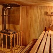 1уровень: финская сауна на дровах,бассейн с подогревом, 2 душевые, туалет и большая комната отдыха. В стоимость входит пользование сауной 1 раз в неделю.