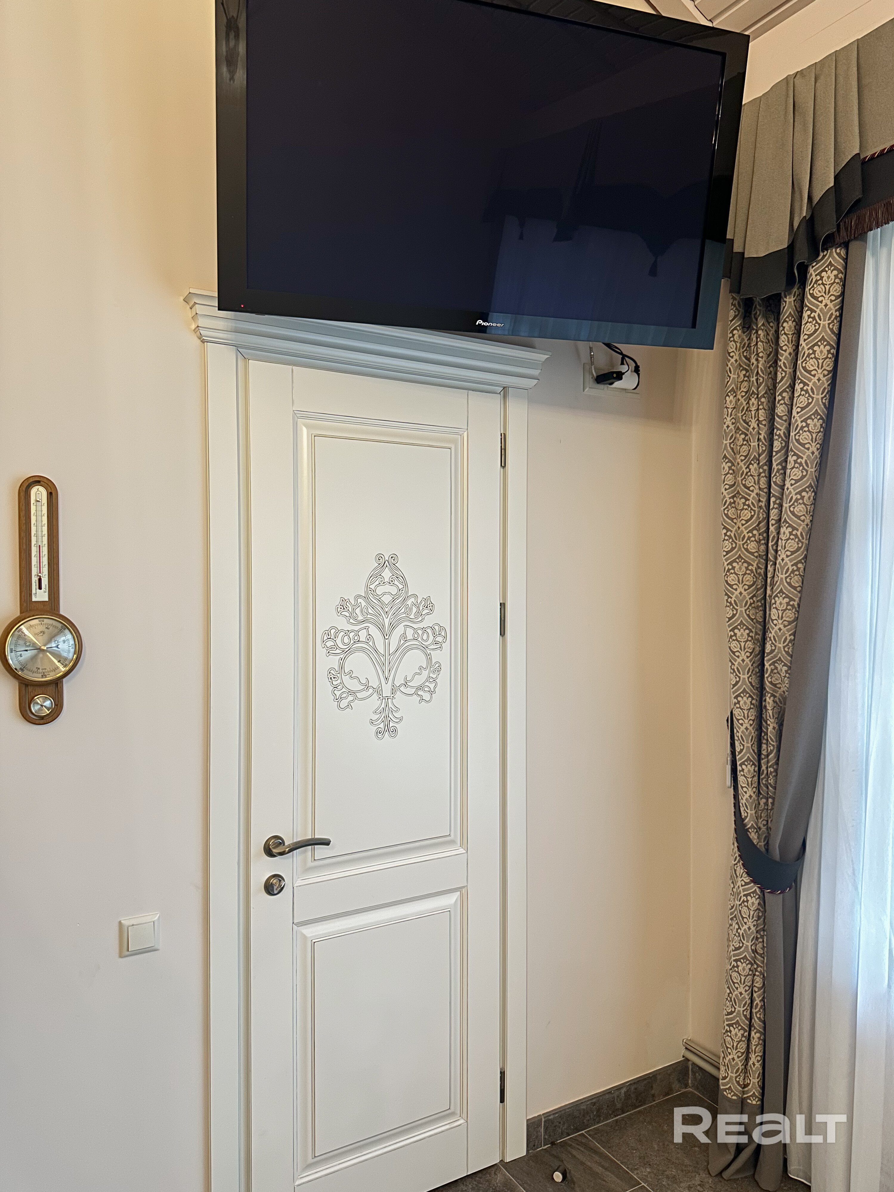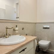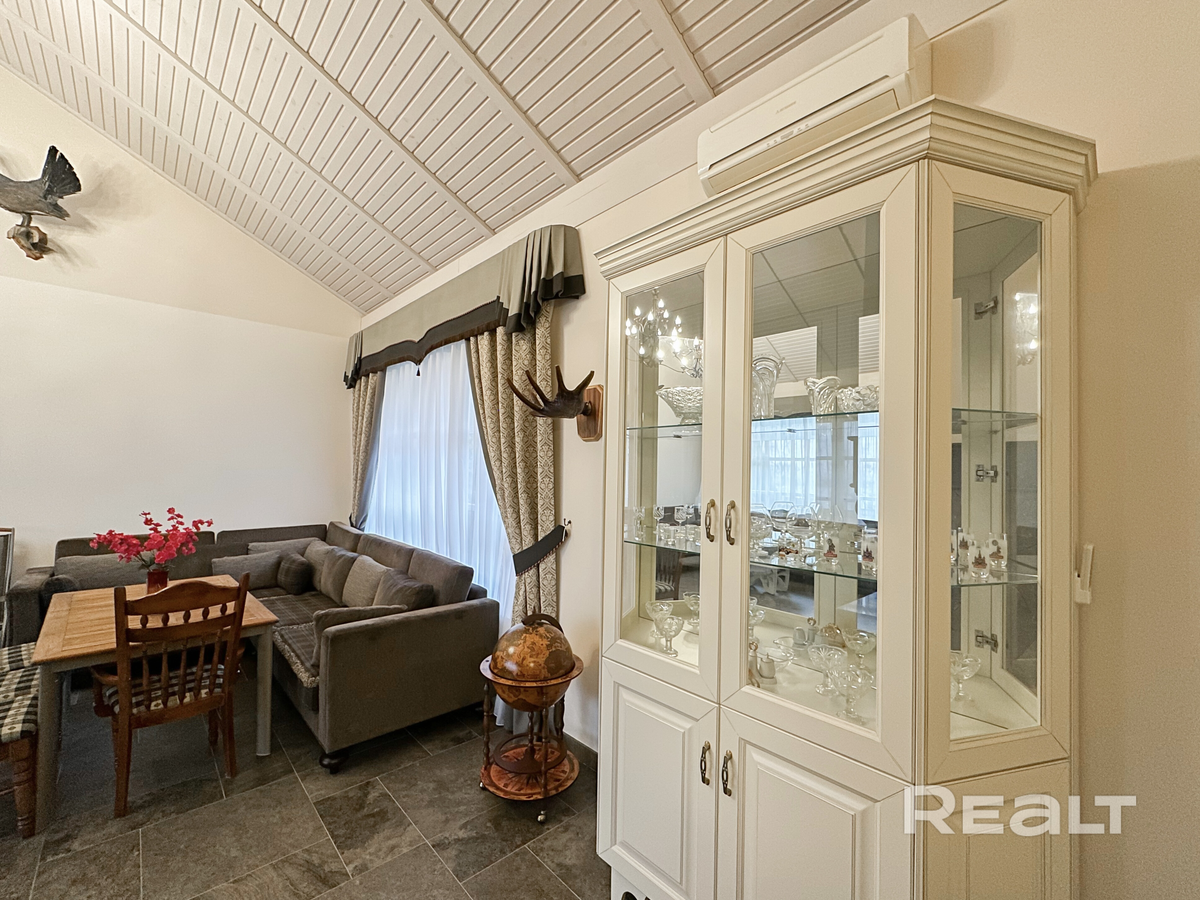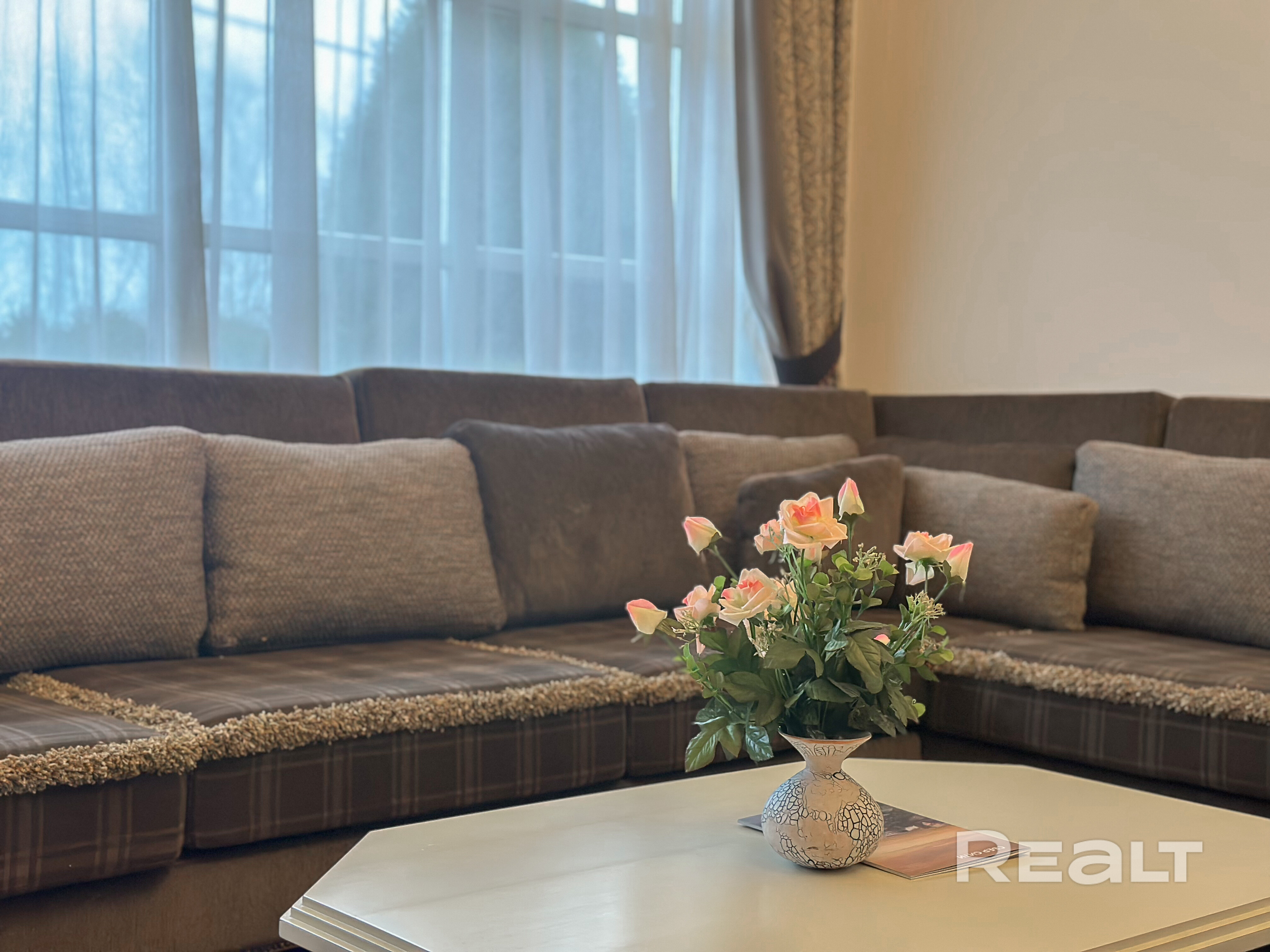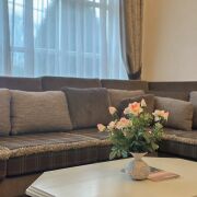 Большая гостиная 44,8 м² с камином, отделанным натуральным камнем Две уютные жилые комнаты: 10,1 м² и 9,4 м² Центральные коммуникации Паровое отопление на газу Кондиционер Полностью укомплектован мебелью и техникой