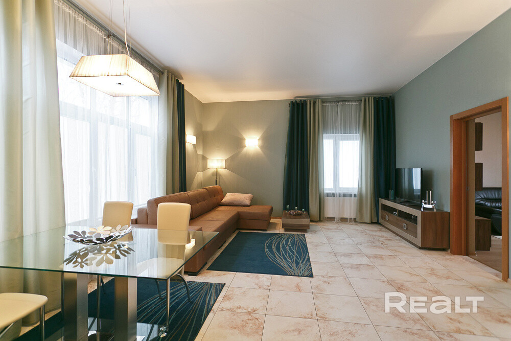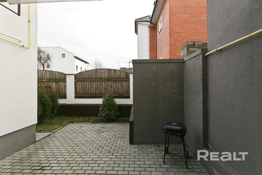 Своя огороженная территория с парковкой, так же рядом с домом всегда свободные парковочные места, обустроенное место отдыха с навесом, BBQ. Тихий Центр, экологически чистый и престижный район города Минска. Рядом парковая зона, великолепный панорамный вид на парк. Квартира в идеальном состоянии, полностью укомплектована всей мебелью и бытовой техникой, есть хозяйственная комната, большая кладовая, два санузла, ванна, душевая кабина, теплые полы, высокие потолки, дизайнерский ремонт