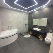 Сдается современный дом с дизайнерским ремонтом всего в 1 минуте от МКАД. В доме просторная гостиная с панорамными окнами, большая кухня с островом и встроенной техникой, несколько спален, гардеробная, ТВ-комната и постирочная. 2 санузла: душевая и ванная комната с джакузи. Дом полностью меблирован и готов к проживанию. Дизайнерские потолки с LED-подсветкой, современный ремонт и много света. Участок огорожен, есть навес для автомобиля. Отличный вариант для комфортной жизни рядом с городом.