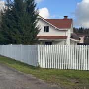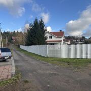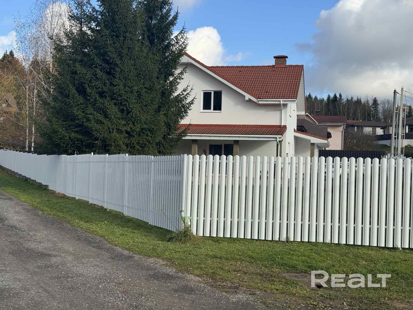 Периметр дома огражден забором с откатными воротами на дистанционном управлении.