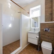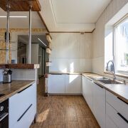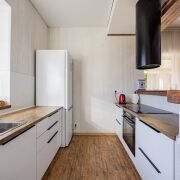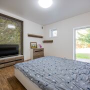 Регулируемые теплые полы по всему дому, косвенный нагрев воды в бойлере, встроенная бытовая техника, два санузла, оборудованная кухня.