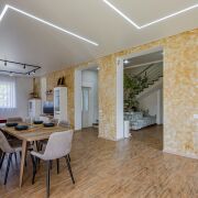 Внутренняя отделка дома выполнена преимущественно в светлых тонах, что придает чувство комфорта, безопасности и домашнего уюта.