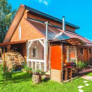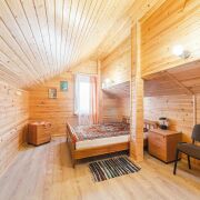 Полностью оборудованная баня , парилка на дровах, душ, санузел, застекленная терраса , барбекю, русская печь. На втором этаже две комнаты.