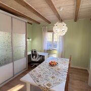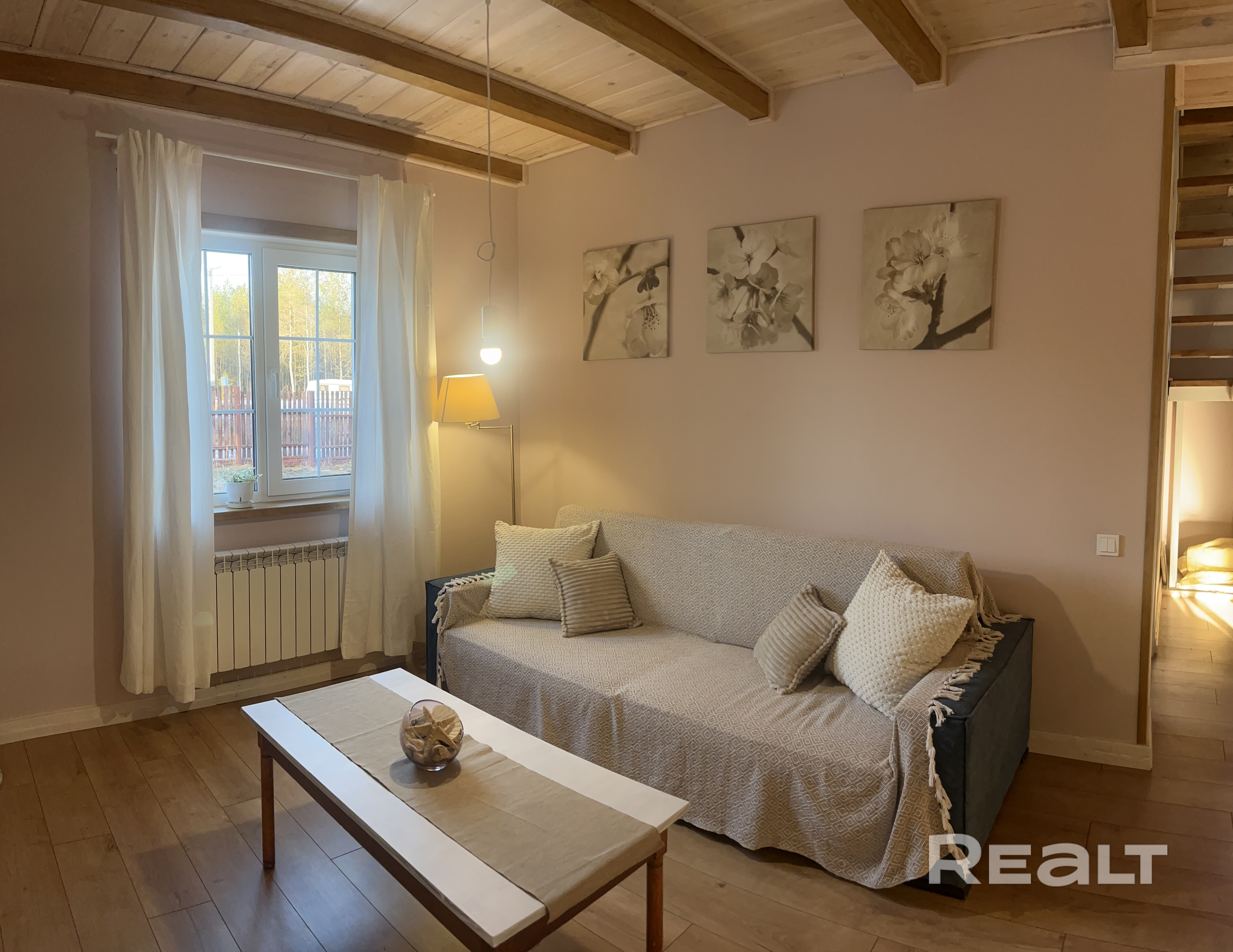 Новый деревянный дом с баней в 30 минутах от Минска. Тихое живописное место, на участке сосны и пруд, рядом лес и нет соседей. В пешем расстоянии чистые озёра. Дом из экологичных материалов, тёплый зимой и прохладный летом, ранее не сдавался. Планировка: 1 этаж: кухня-гостиная, зона отдыха, спальня, санузел; 2 этаж: спальня, 2 детские и санузел. Рядом эко-тропы для прогулок/пробежек, в 2 км. монастырь и подворье. Дружные соседи в телеграм группе. Сдаётся на длительный срок аккуратным жильцам.