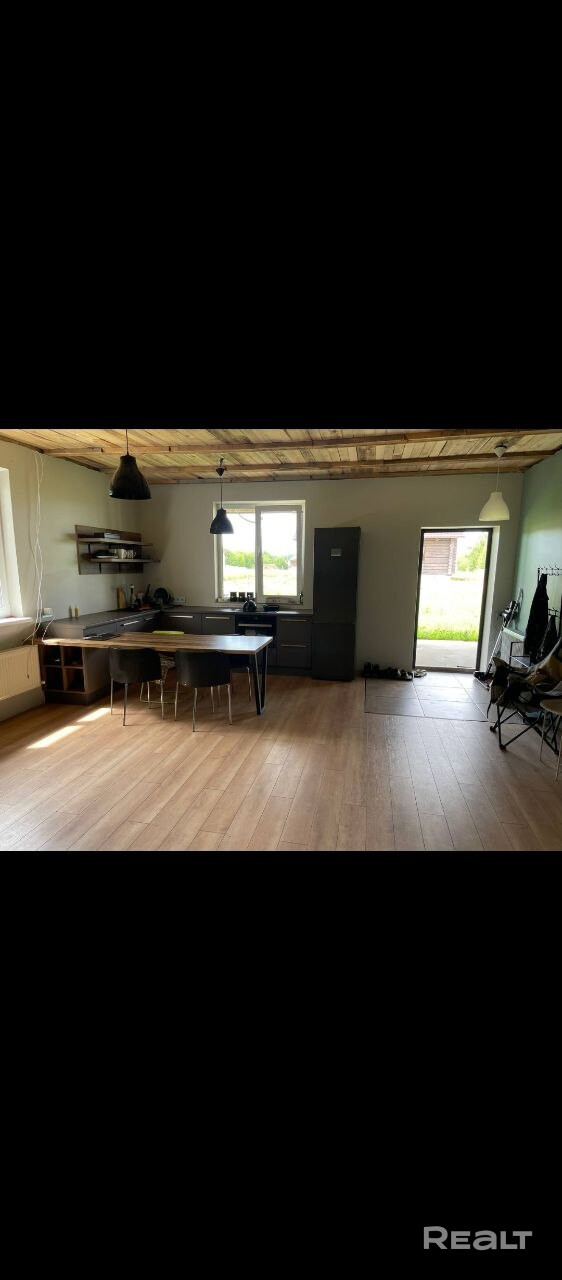 Сдаётся дом в современном стиле на Вилейском водохранилище, 70 км от Минска. В доме 2 спальни и большой зал, совмещенный с кухней. Одна спальня с 2х местной кроватью, вторая спальня с 2мя одноместными кроватями. В зале - раскладной диван. Есть возможность добавить спальное место. Современная кухня, оборудована посудой и посудомоечной машиной. Есть регулируемое отопление, все коммуникации, высокоскоростной ИНТЕРНЕТ. Открытая веранда под крышей, большой участок, НЕ огороженный забором