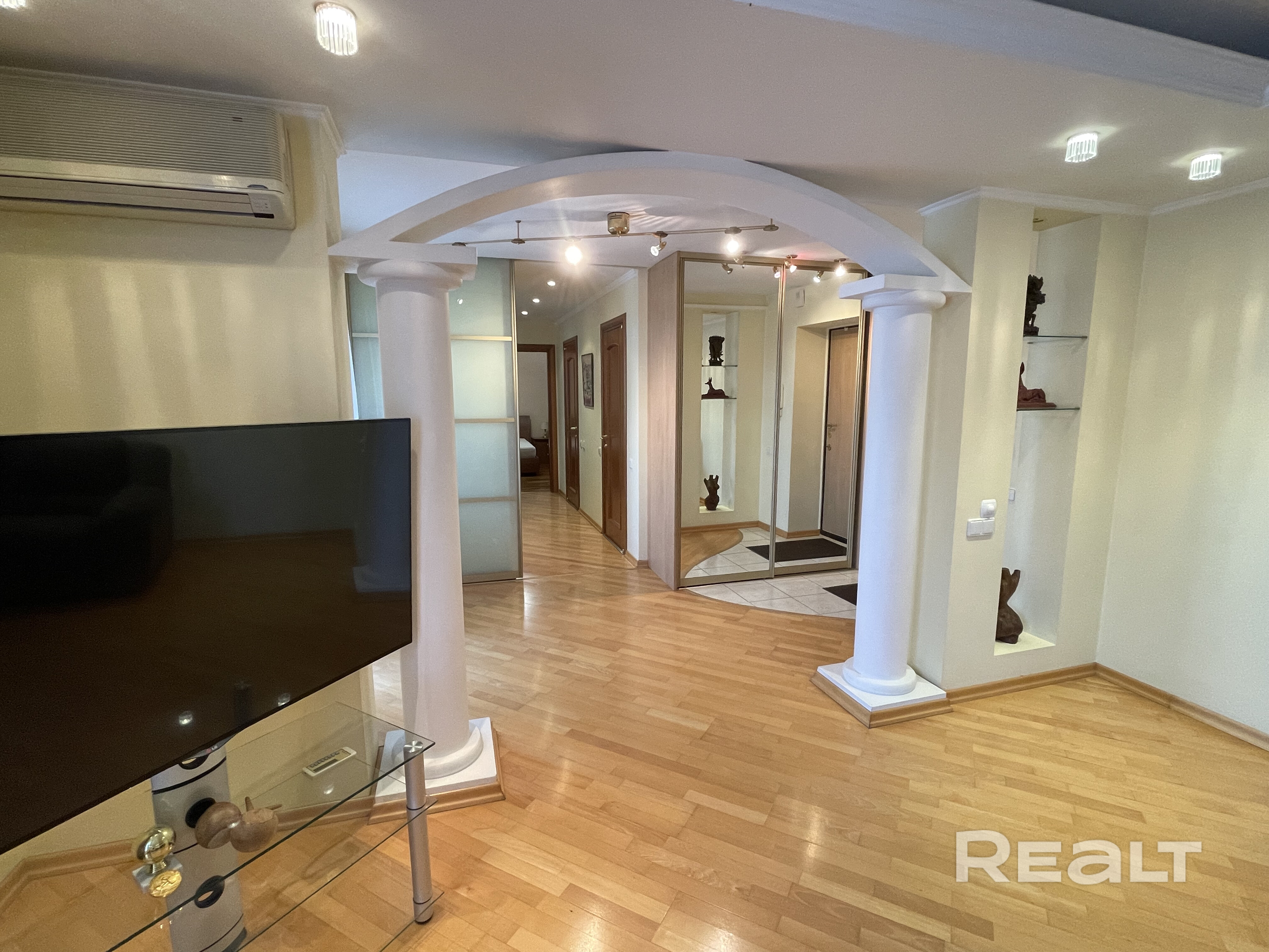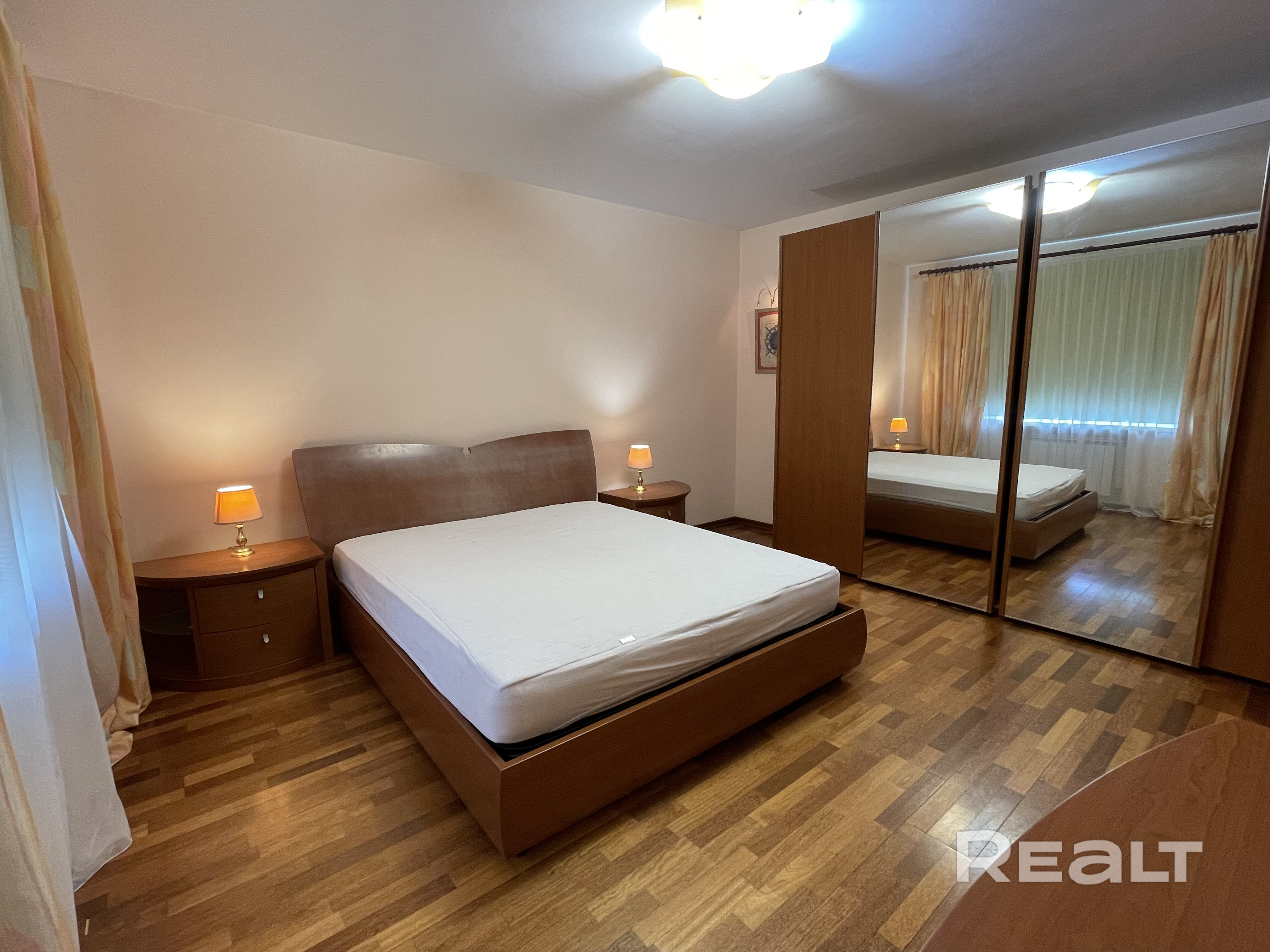 VIP двухкомнатная квартира в центре Минска (7-10 мин на авто до исторического центра). Квартира расположена в некогда элитном доме. Окна выходят на юг в тихий двор с видом на парк и пешеходную аллею. Имеется 2 подземных парковки рядом.