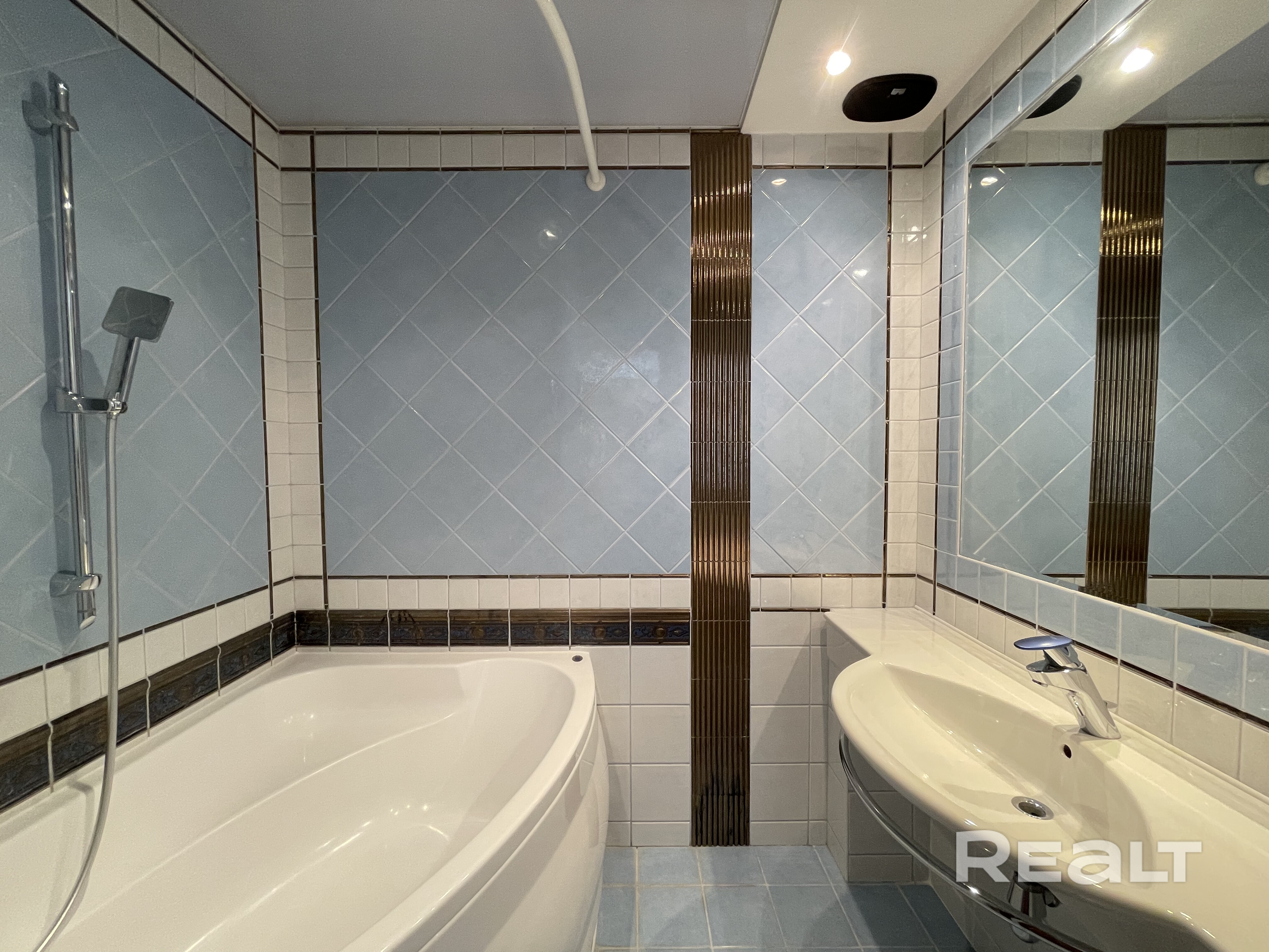 В квартире сделан стильный ремонт в современной классике из высококлассных дорогостоящих материалов: шведские паркетные полы (бук и кемпас), итальянская плитка Версаче, теплые полы, многоуровневые потолки с регулируемым освещением, финская сантехника IDO, смесители Grohe, итальянские светильники Baga и Foscarini, сейф. Итальянская мебель Natuzzi, итальянская кухня, 2 просторных шкафа и комод. Блокирующие ролл-шторы в спальне.