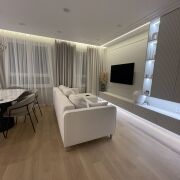 Сдается роскошная светлая трехкомнатная квартира с дизайнерским ремонтом на берегу реки Свислочь в ЖК «Левада" по адресу Нововиленская, 29. Квартира находится в центральном районе города Минска, живописное место (поблизости находятся парк Победы, Комсомольское озеро, ТЦ Замок и Palazzo). На территории комплекса расположены новые детские и спортивные площадки с закрытой территорией; фитнес-зал; магазин; кофейни.