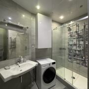 Длительная аренда. Квартира-студия. Дизайнерский ремонт, встроенная техника, полностью мебелированная квартира, отдельная просторная гардеробная, большая длинная лоджия. Есть кондиционер. Кровать-подиум с ортопедическим матрасом, кожаный диван раскладывается. 7 минут пешком до метро Спортивная. 2 минуты до остановок общественного транспорта. В 5 минутах: тц «Скала», тренажерный зал «Yestoday». В доме есть пвз wildberries, продуктовый магазин.