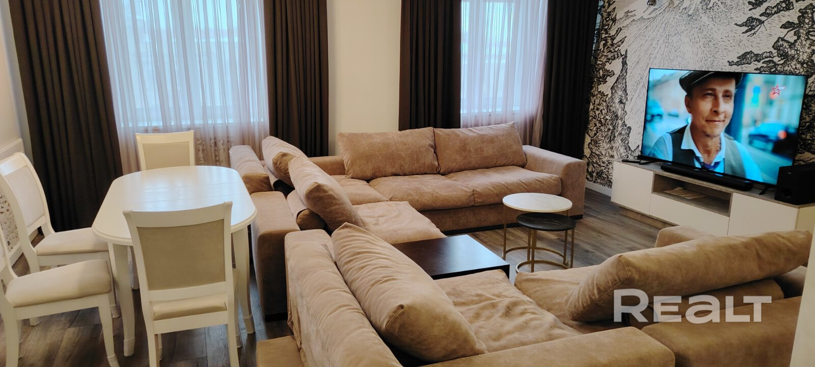 Сдаётся квартира в центре Минска. Хороший ремонт, подогрев полов, в гостиной большой телевизор с саундбаром. Квартира укомплектована всей необходимой мебелью и техникой.