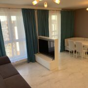 Квартира полностью оборудована всей необходимой бытовой техникой и мебелью. Развитая инфраструктура - в шаговой доступности кофейни, магазины, супермаркет, прямо возле дома набережная реки Свислочь с велодорожками и зеленой зоной (парк Победы через дорогу, Марриотт с инфраструктурой для отдыха), ТРЦ Замок, ТРЦ Палаццо, Мир фитнеса, гипермаркет Санта.