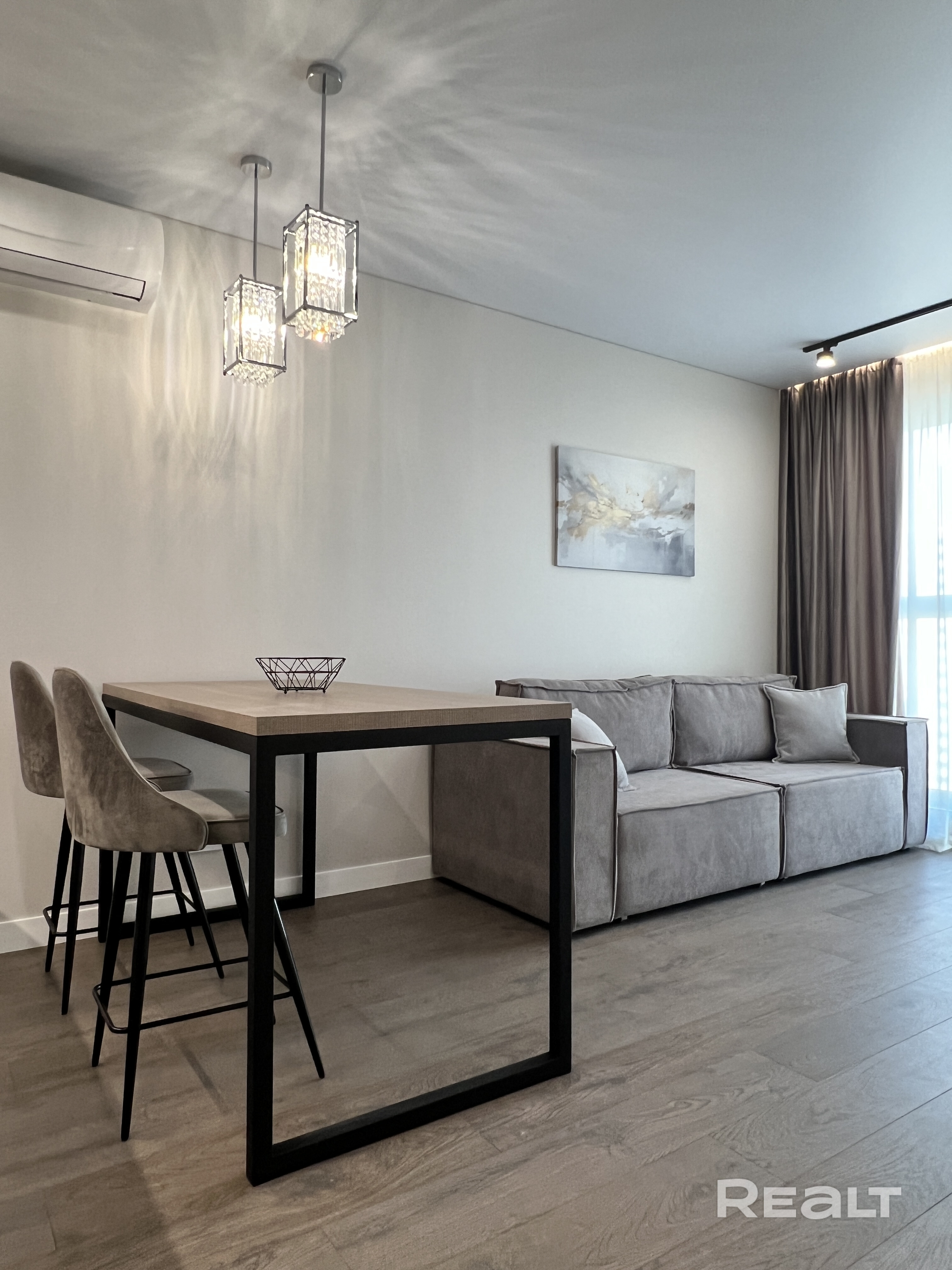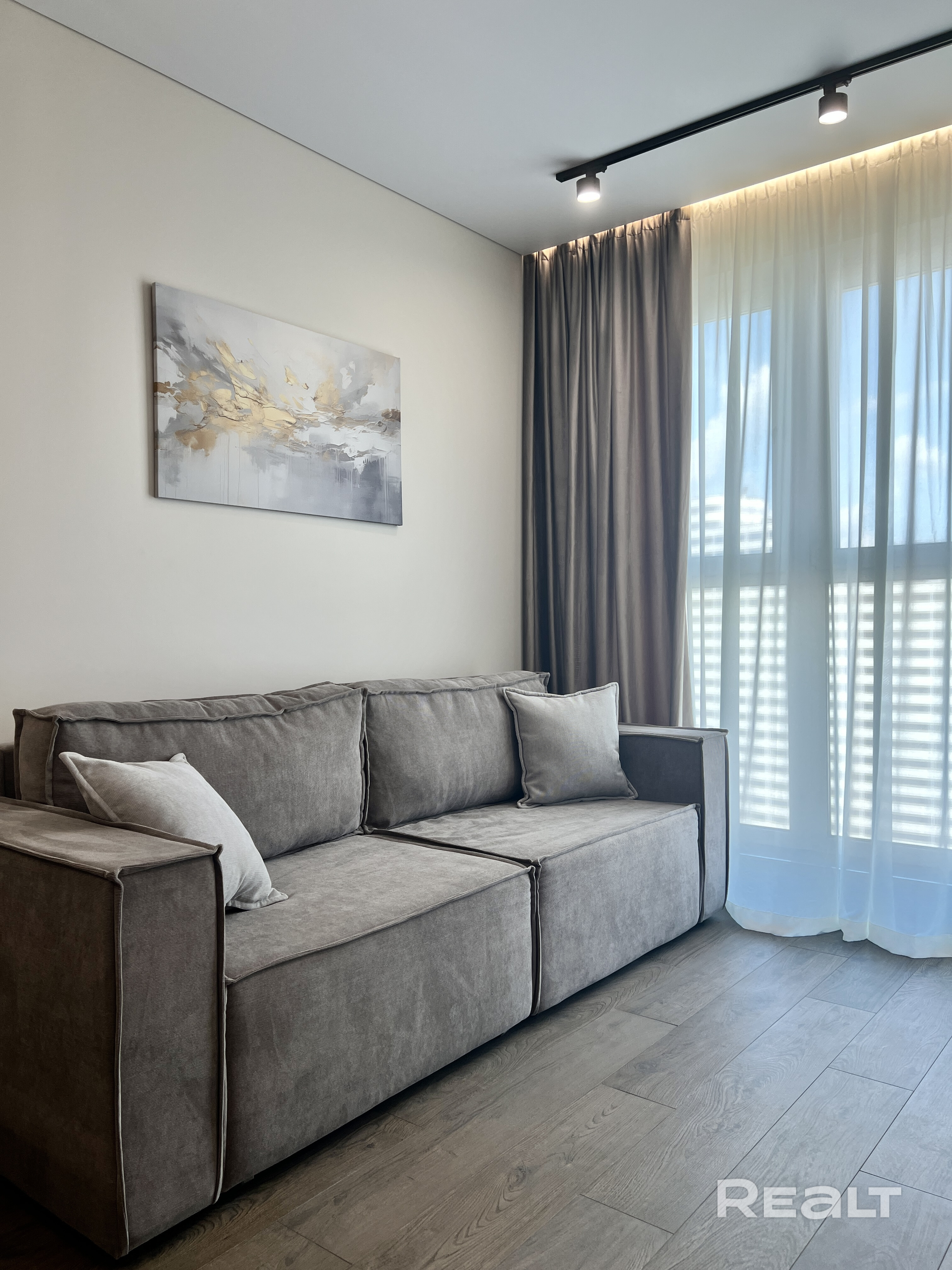 Дизайнерская квартира с видом на Авиа Молл в комплексе Минск Мир. ТОЛЬКО ДЛИТЕЛЬНАЯ АРЕНДА, Обязательный залог за 1 месяц. Квартира полностью укомплектована всей мебелью и техникой для комфортного проживания : телевизор, дух шкаф, вар панель, микровол печь, посудом. машина , стир. машина , кондиционер, двуспальная кровать, диван. Большая гардеробная, встроенная мебель, бойлер, высокоскор. ин-т . Высокий 15 этаж с видом на Авиа Молл на восточ. сторону. Вход в метро рядом с домом.