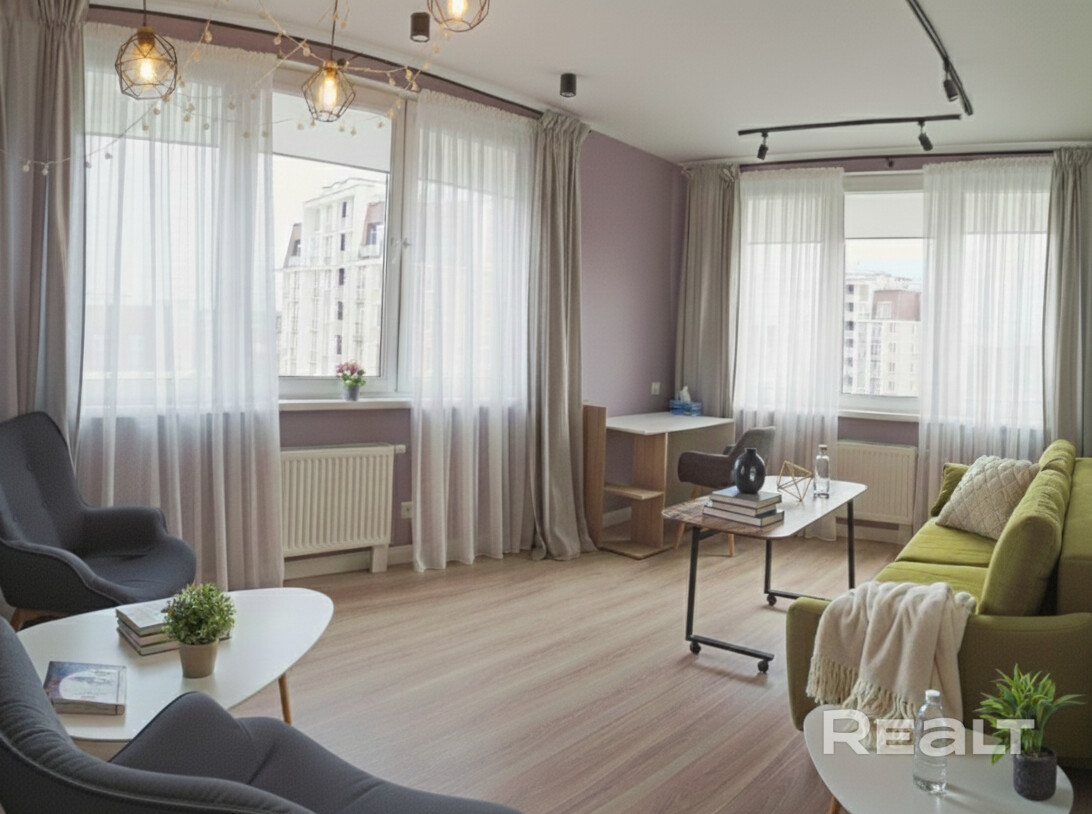 Только на длительный срок (от года, при досрочном расторжении штраф). Удобная, функциональная квартира Маяк Минска. Рядом тренажёрные, кафе, бары, прогулочные улицы, библиотека, речка, гиппер-маркет и магазин прямо под домом, окна на двор. Сдается не студентам, в квартире нельзя животных и курить.