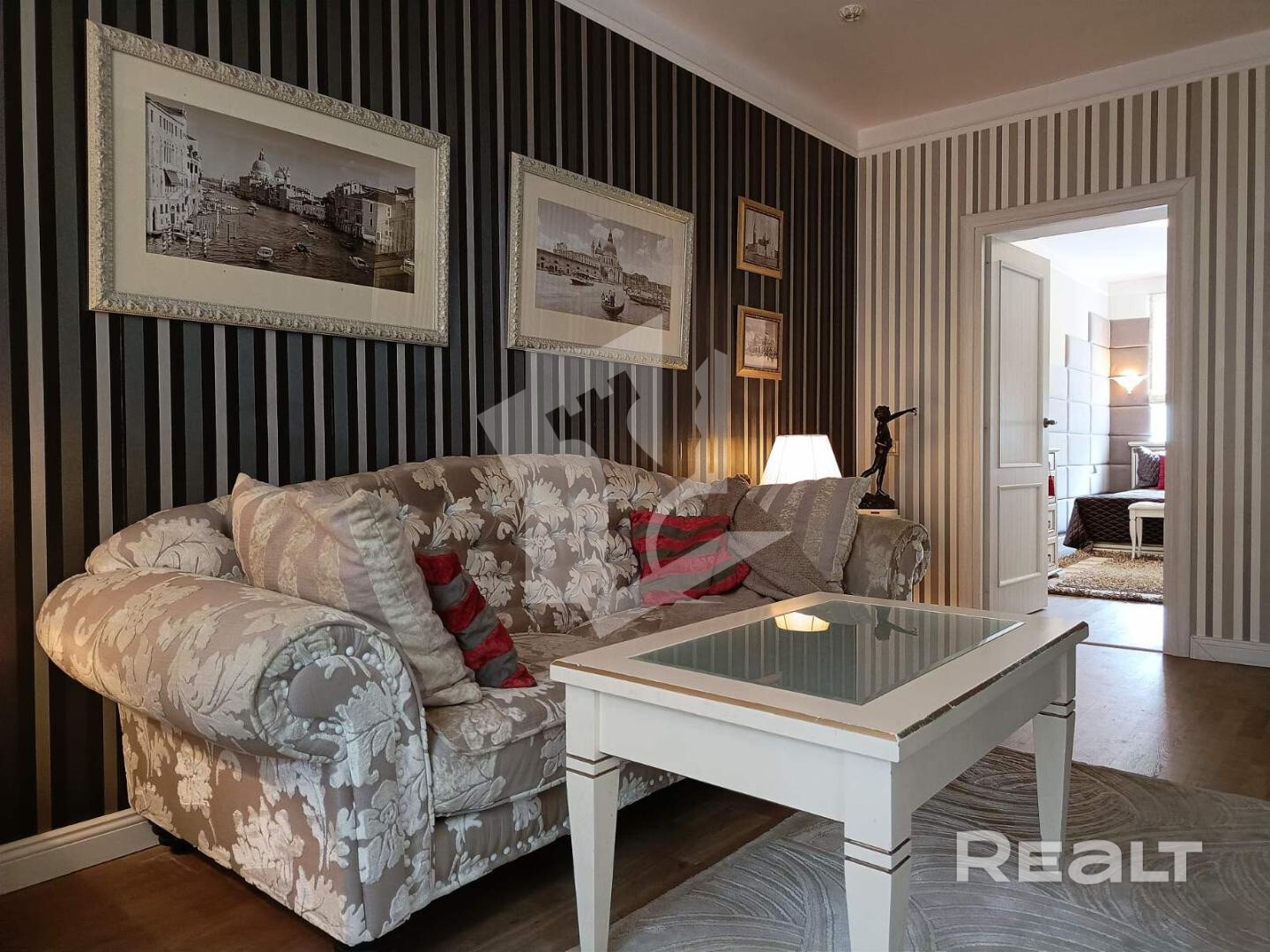 Сдаётся на длительный срок шикарная двухкомнатная квартира в центре города по улице Гебелева 3. Отличное транспортное сообщение, квартира равноудалена от станций метро "Юбилейная площадь" и "Площадь Франтишка Богушевича" , "Фрунзенская" . В пяти минутах езды Немига. Квартира с дизайнерским ремонтом. Полностью укомплектована мебелью и бытовой техникой – стиральная машины, посудомоечная машина, встроенный холодильник, духовой шкаф, варочная панель, кофе-машина, варочная панель, духовой шкаф, вытяжка, электро чайник, кофе машина, микроволновая печь. В квартире установлен кондиционер, бойлер. Удобная планировка, гостиная совмещена с кухней, в ванной установлена душевая кабина.Для уединённого отдыха в гостиной и спальне имеются два телевизора. Для хранения имеется большая вместительная гардеробная. Мебель и бытовая техника новая.