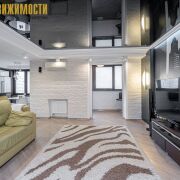Три раздельные комнаты, гостиная совмещена с кухней. Два раздельных с/у.