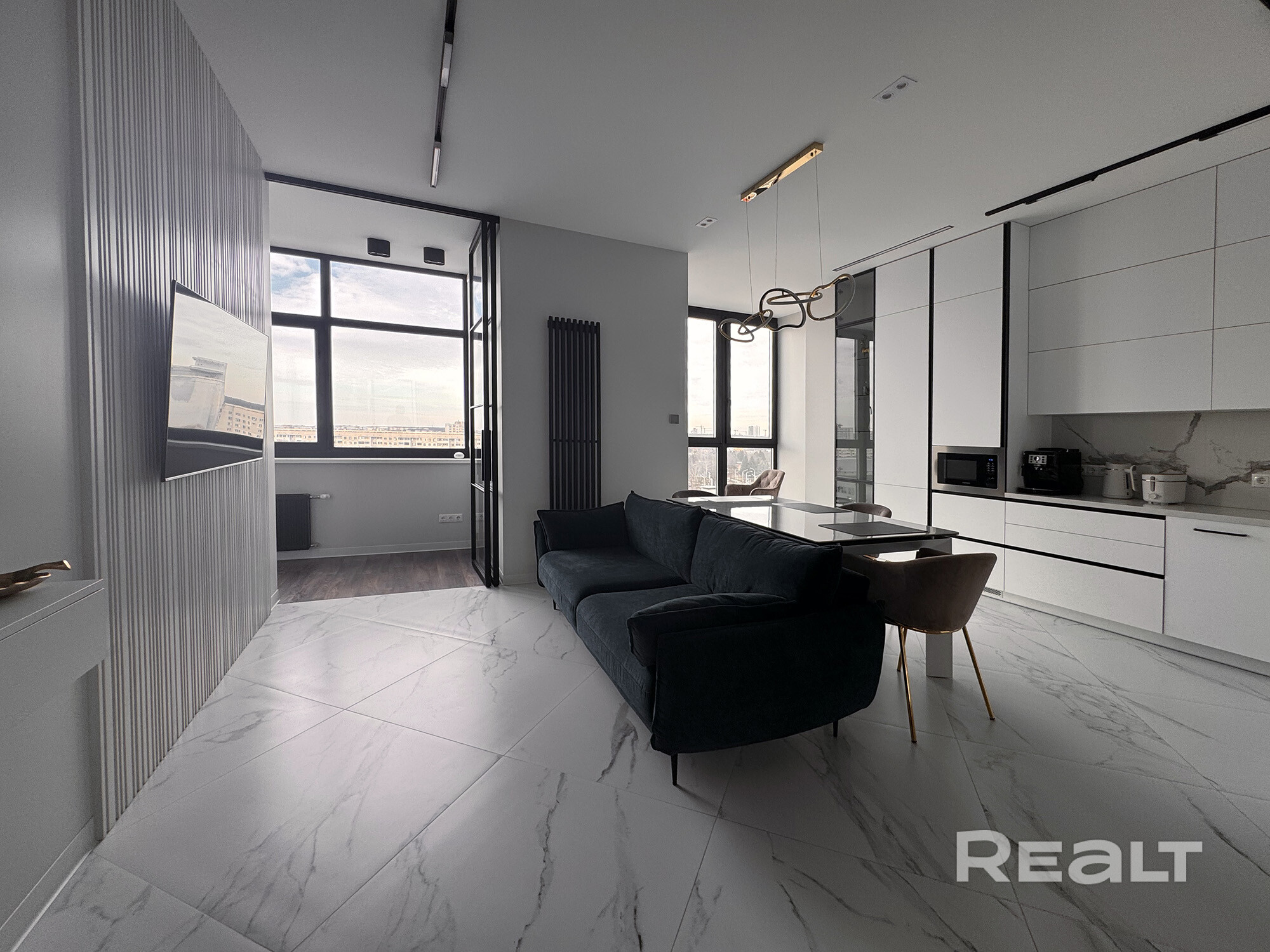 Весь свет, теплый пол (ванная, кухня, столовая, балкон) подключены через умный дом (Алису).