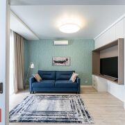 Выполнен качественный дизайнерский ремонт; полностью укомплектована всей необходимой мебелью и техникой для комфортного проживания.